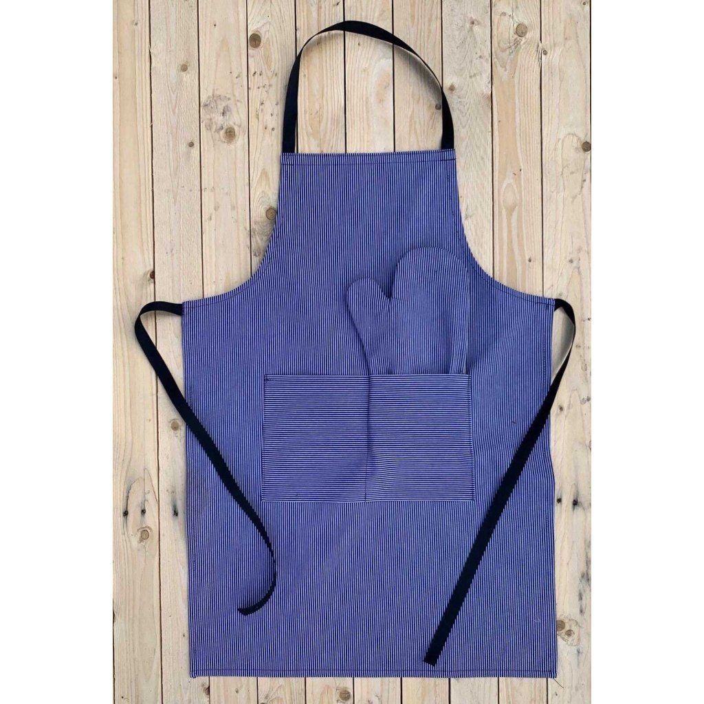 Grilovací set – zástěra a chňapka v modrém proužku