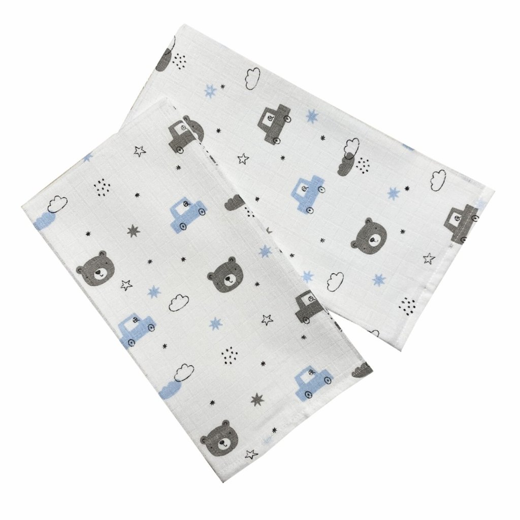 Látková plena 70x70 cm Méďa a auto (balení 5 ks)