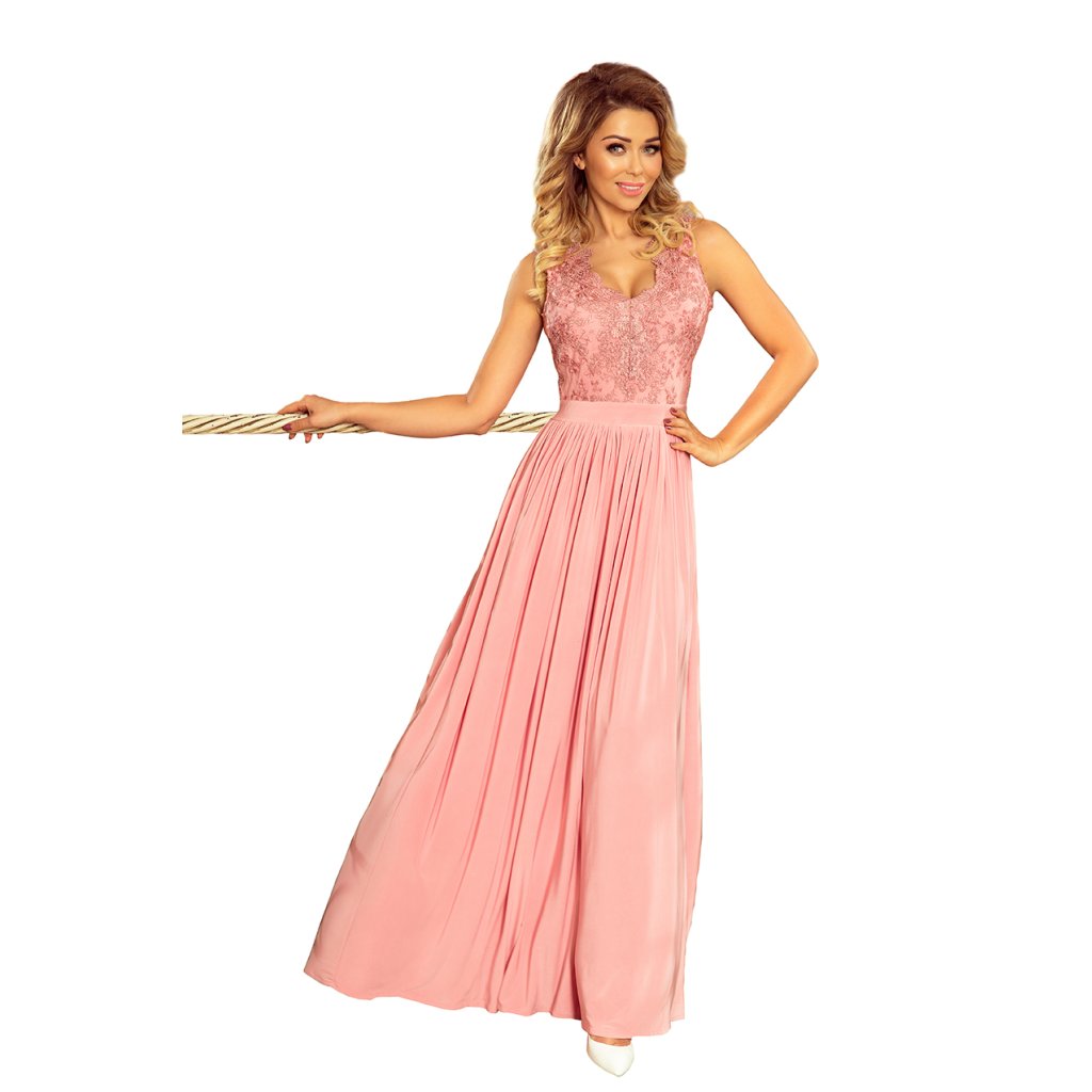 LEA dlouhé šaty s vyšívaným výstřihem - růžové 215-3
