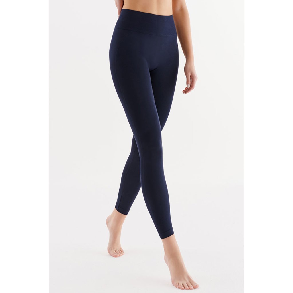 Hladké černé legíny vyrobeny z hladkého elastického materiálu.