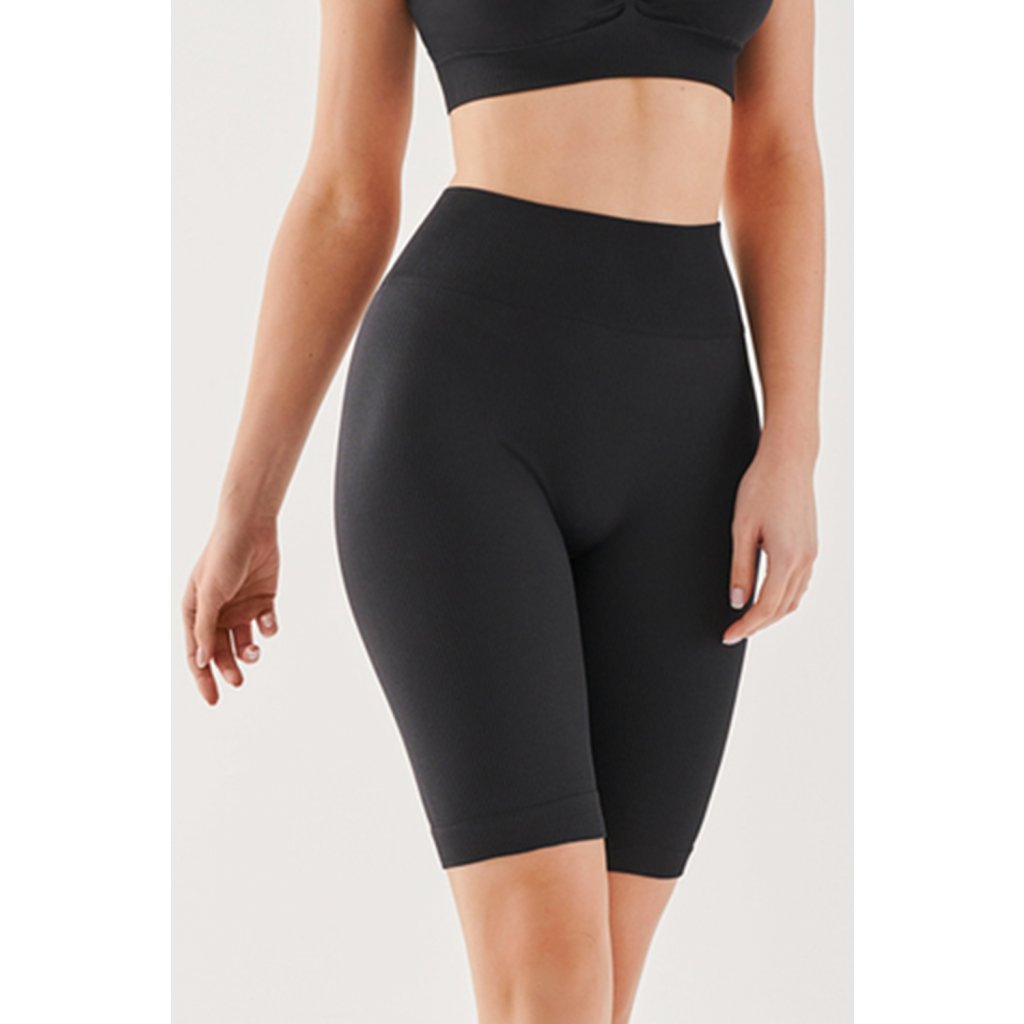 Dámské krátké legíny vyrobeny z žebrovaného materiálu.- vysoký pas
