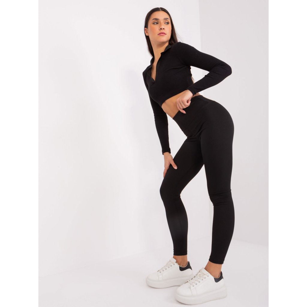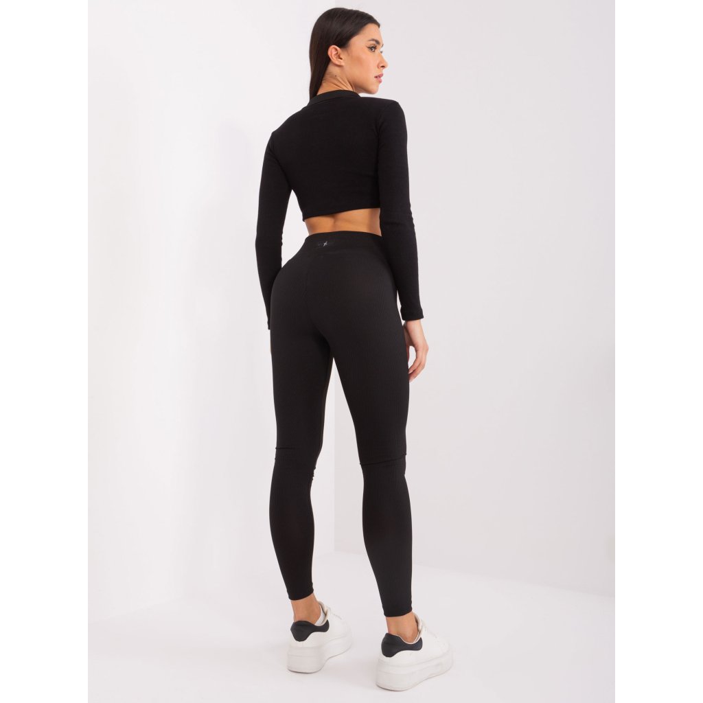 Černé basic sportovní legíny s pruhovaným vzorem vhodné na každý den, do města, na procházku