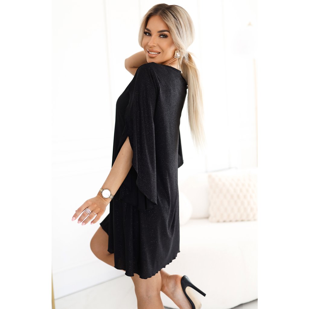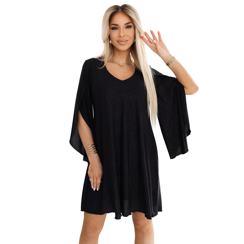 Černé třpytivé trapézové šaty s motýlími rukávy – Numoco
