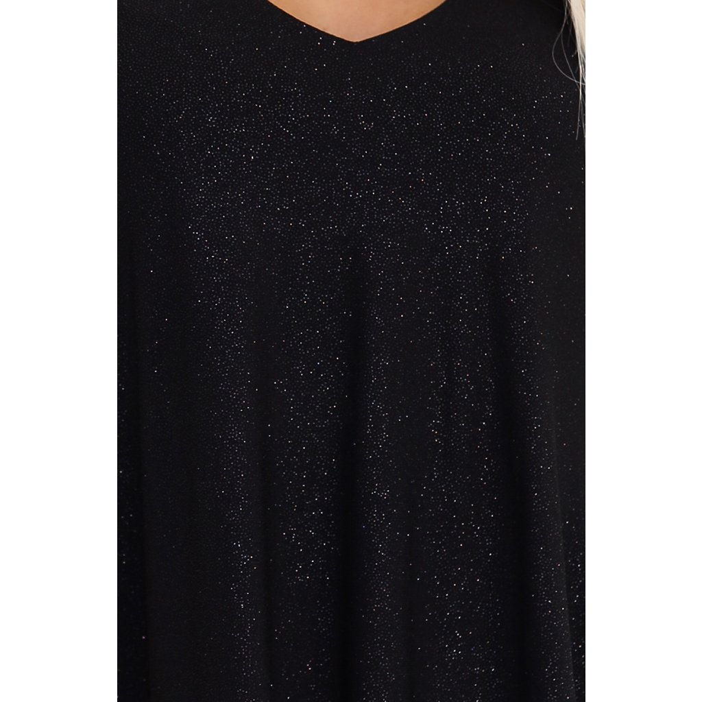 Trapézové černé šaty se třpytkami a motýlími rukávy. Elegantní, pohodlné, z lesklého materiálu. Ideální na večery a speciální příležitosti. Polský výrobek značky Numoco.
