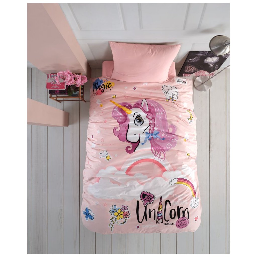 Ložní povlečení pro mladé 140x200, 70x90cm Unicorn růžové