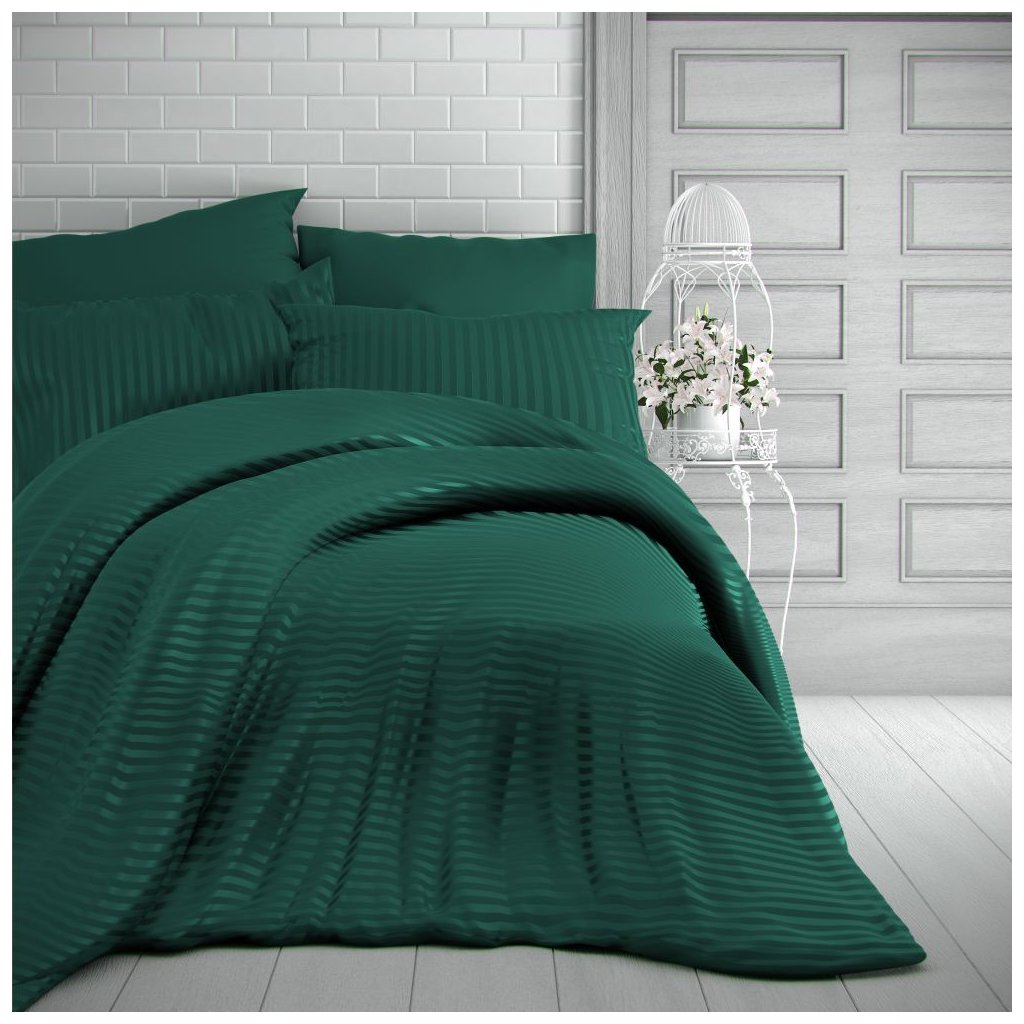 Ložní saténové povlečení s proužkem 140x200, 70x90cm TMAVĚ ZELENÉ