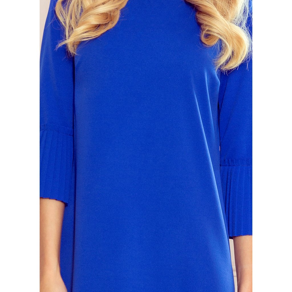 LUCY - skromné a krásné modré šaty s záhybů. Značka numoco. Materiál: 95% polyester, 5% elastan