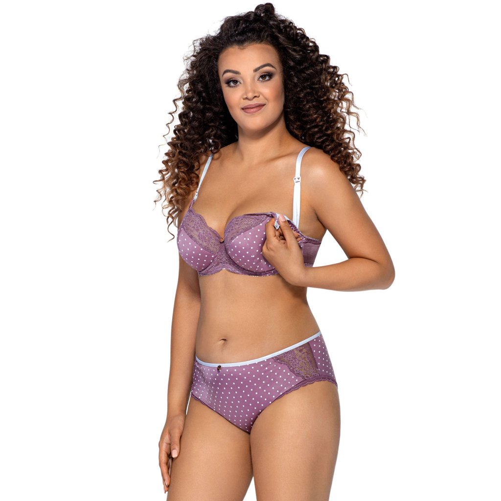 Podprsenka typu semi soft:- vyrobená z jemného mikrovlákna spuntíkovým vzorem- zdobená krajkou- s kosticemi- určená pro těhotné ženy a kojící matky- košíčky podšité bavlnou- odnímatelná ramínka typu Quick Click pro snadnější odepínáníSložení: 88 % polyamid, 8 % bavlna, 4 % elastanDoplňkové parametry