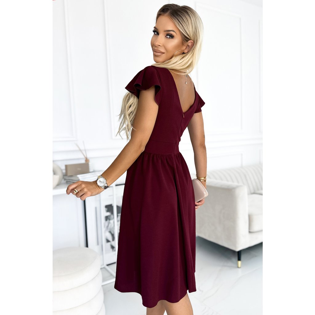 MATILDE Šaty s výstřihem a krátkým rukávem - Vínová barva 425-4
