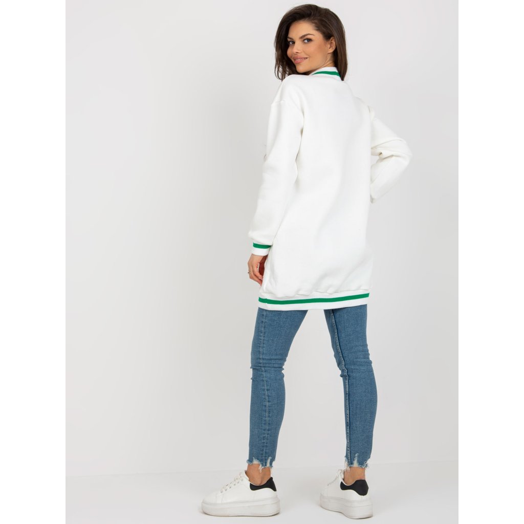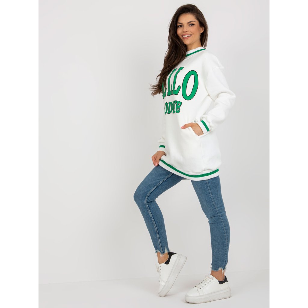 Dlouhá mikina v ecru barvě s potiskem.