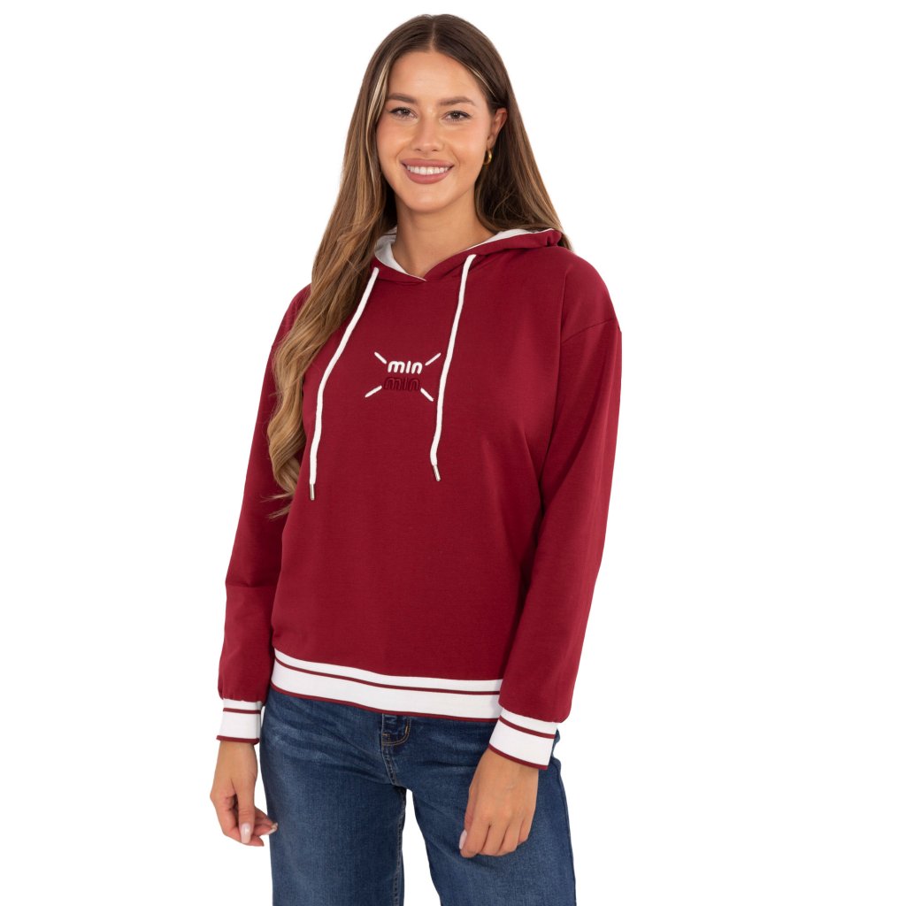 Míry mikiny velikosti jedna, měřeno v plochém stavu, jsou: podpaží - 54 cm, boky - 49 cm, délka rukávu - 54 cm, celková délka - 64 cm.