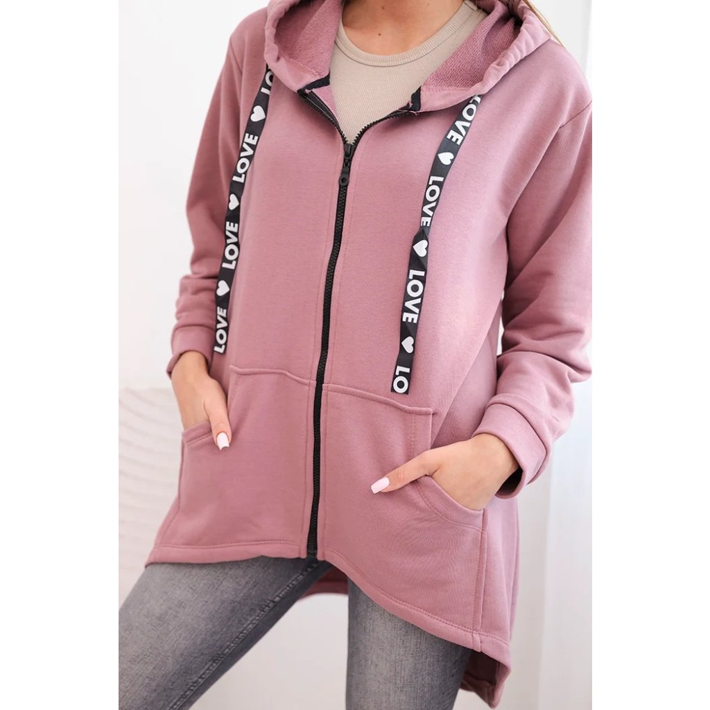 Představujeme vám mikinu s delšími zády a kapucí. Mikina má zapínání na zip a kapsy na přední straně. Díky silnějšímu materiálu je ideální pro chladnější večery nebo podzimní dny. Mikina je vyrobena z vysoce kvalitního materiálu. Velikost je univerzální a vyhovuje dámám, které nosí velikost S, M nebo L.