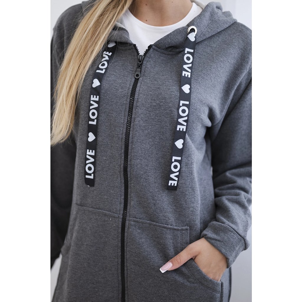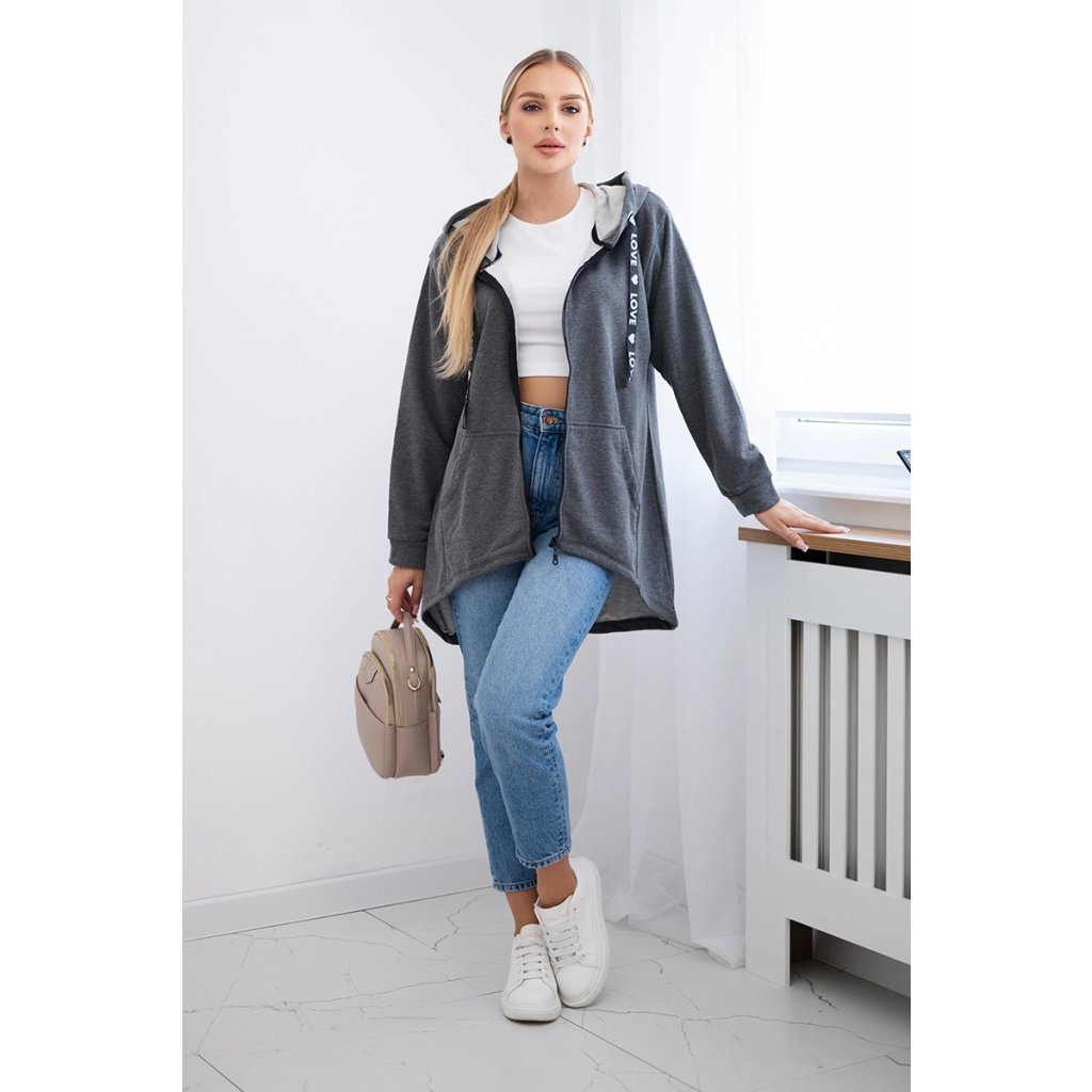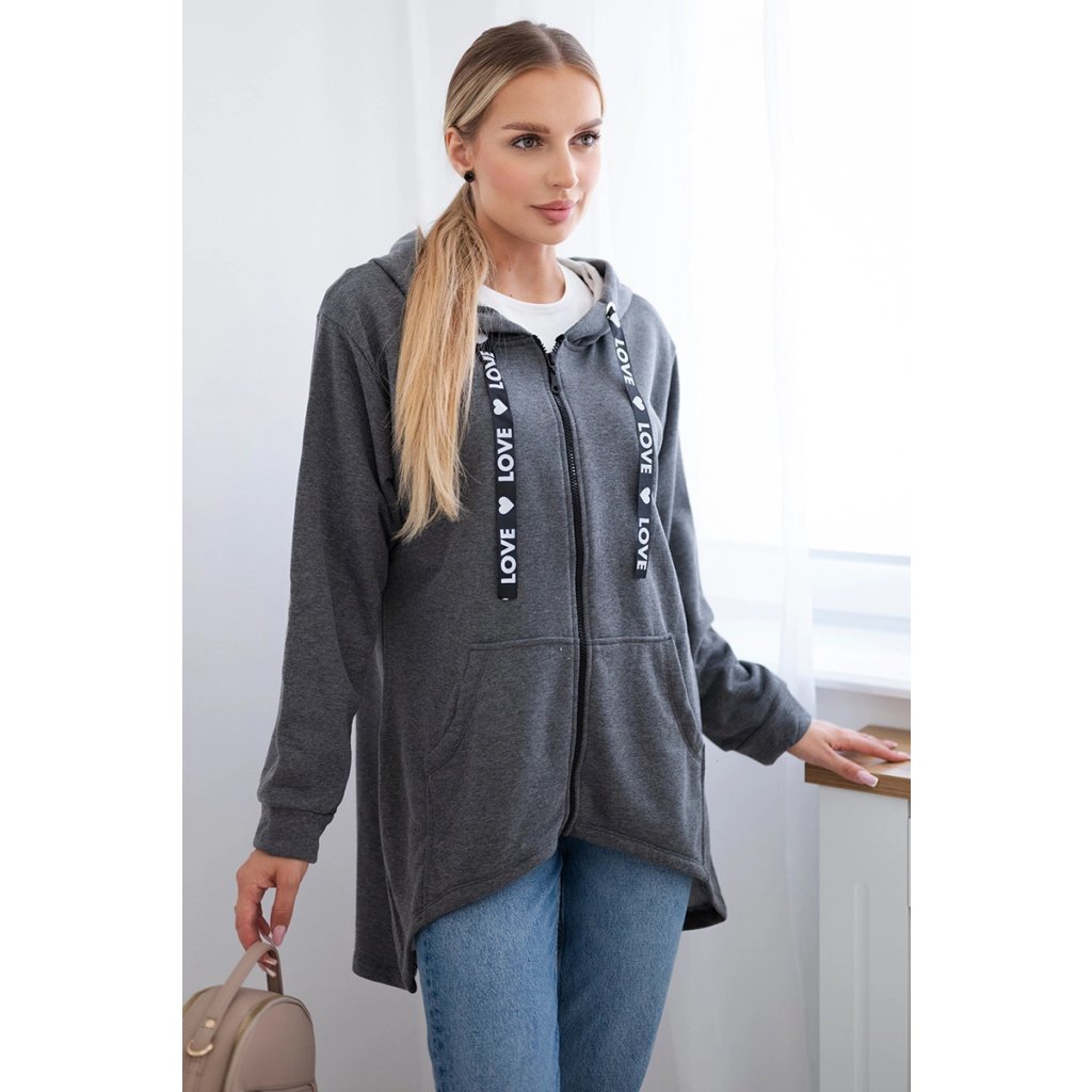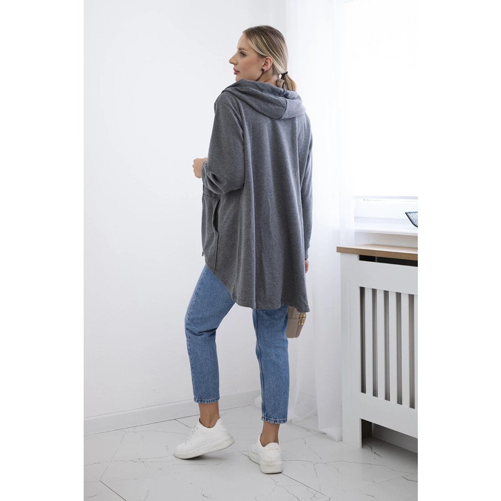 Mikina s kapucí a delšími zády v grafitové barvě