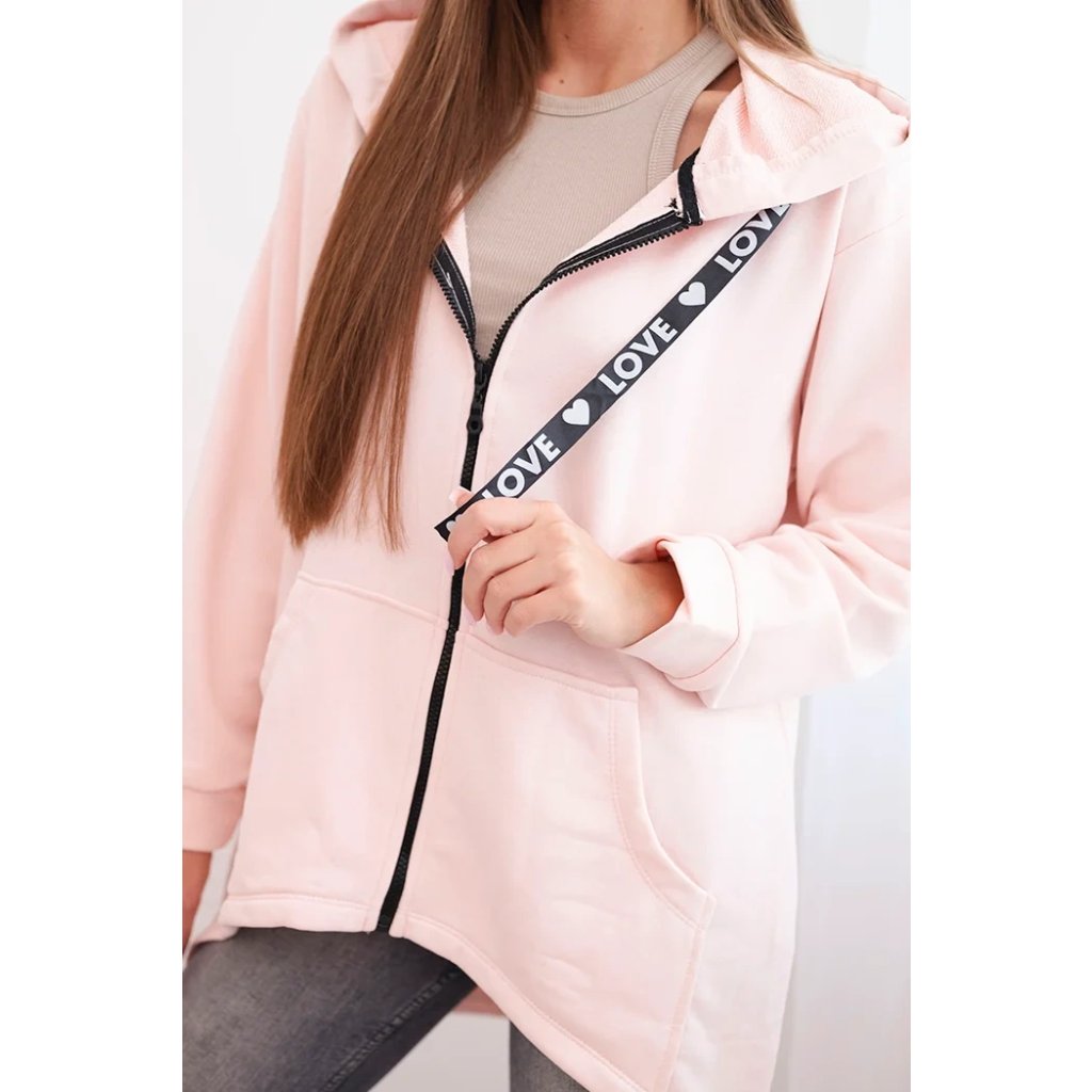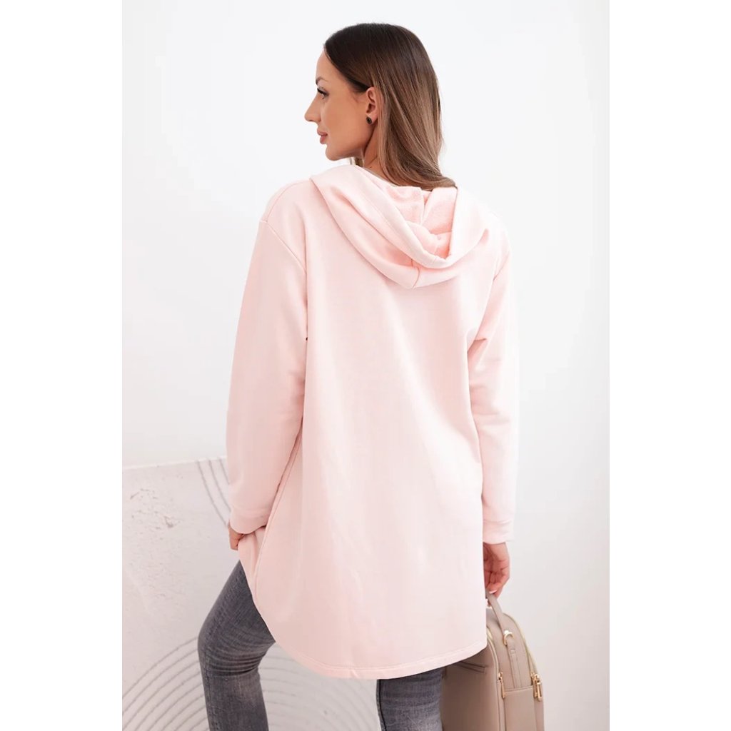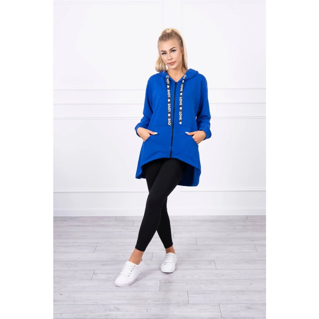 Představujeme vám mikinu s delšími zády a kapucí. Mikina má zapínání na zip a kapsy na přední straně. Díky silnějšímu materiálu je ideální pro chladnější večery nebo podzimní dny. Mikina je vyrobena z vysoce kvalitního materiálu. Velikost je univerzální a vyhovuje dámám, které nosí velikost S, M nebo L.