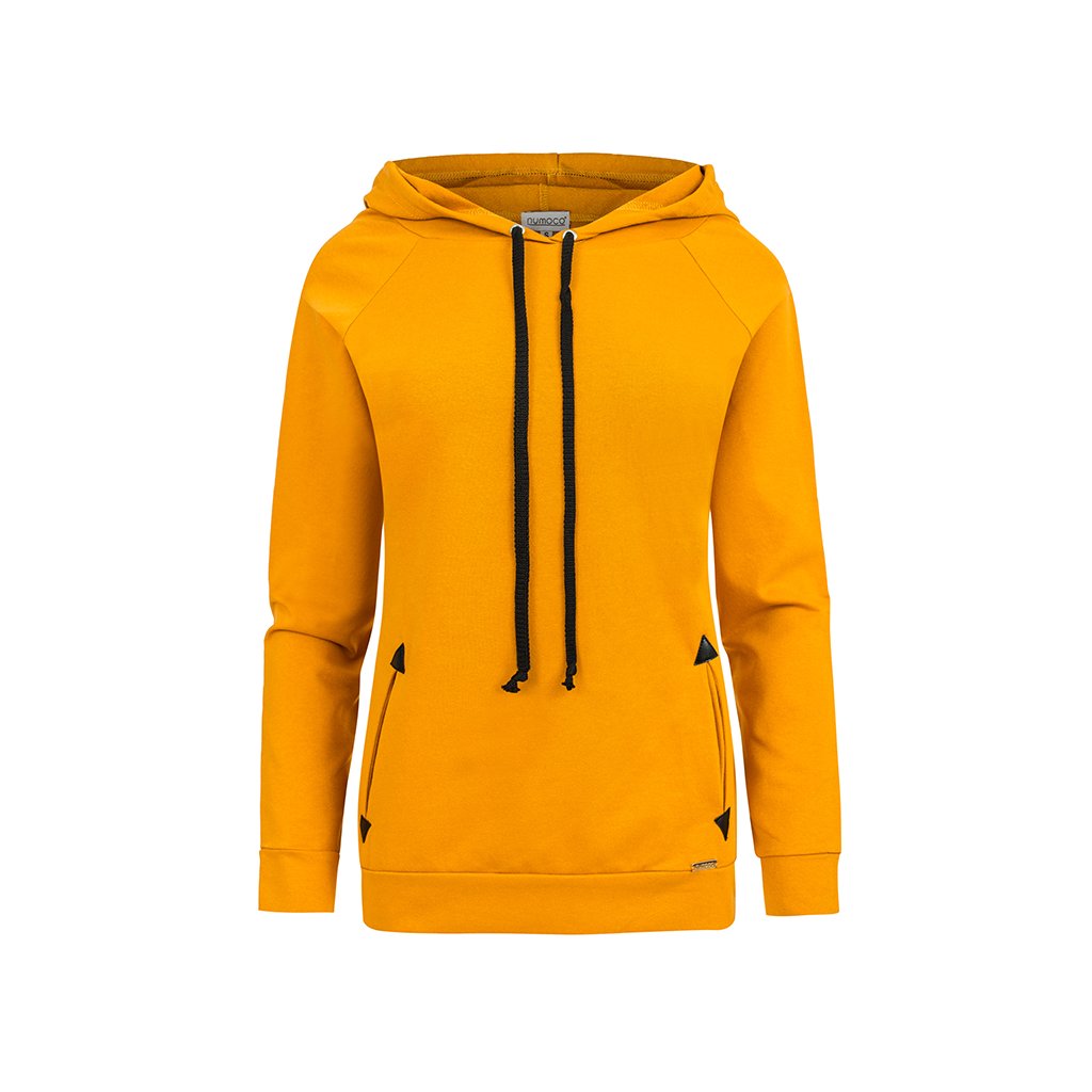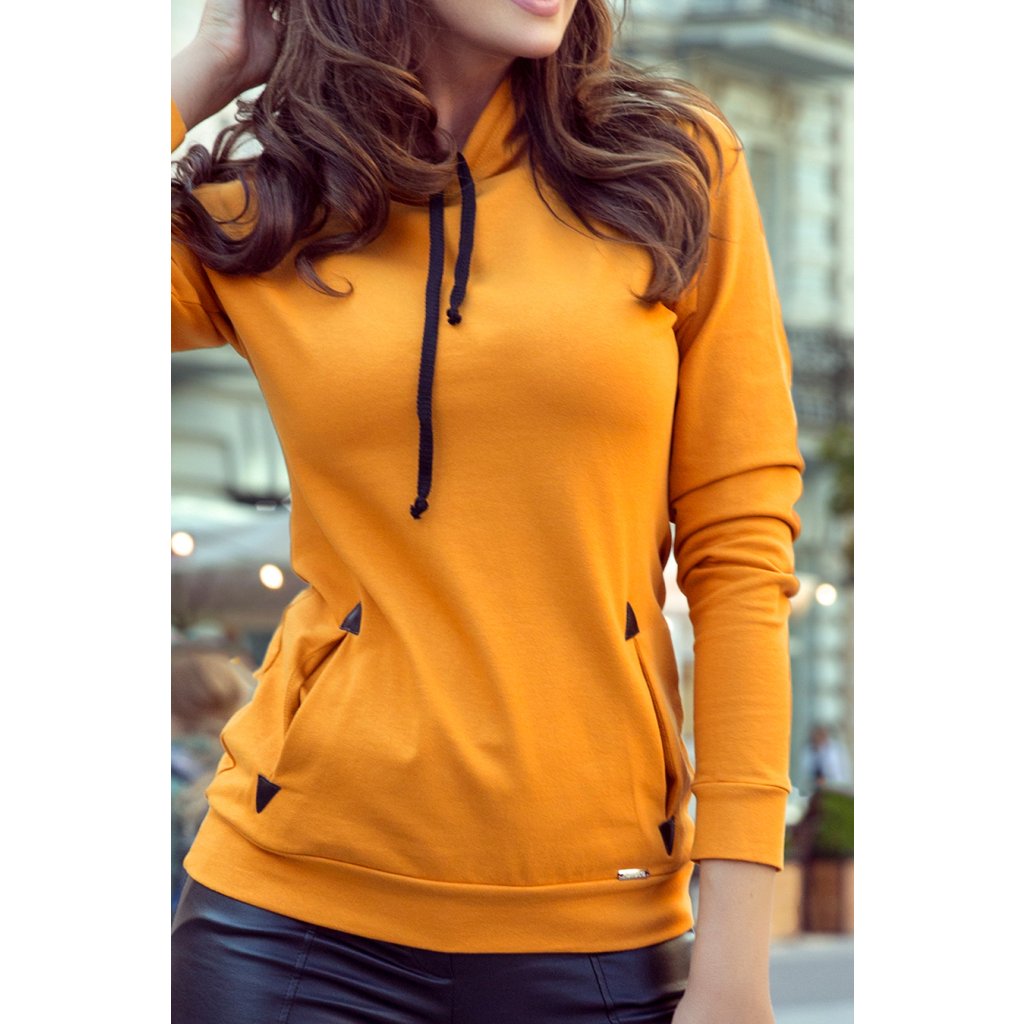 Mikina s kapucí s kapsami - hořčice. Polská produkce. Vyrobeno z příjemného na dotek bavlněného materiálu (95% bavlna, 5% elastan). Značka numoco.