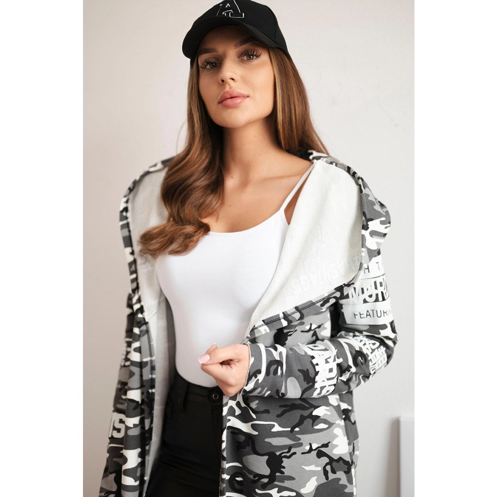 Představujeme vám dlouhou sukni s kapucí s nápisy. Bunda je vyrobena z vysoce kvalitního materiálu. Velikost je univerzální a vyhovuje dámským velikostem S, M a L
