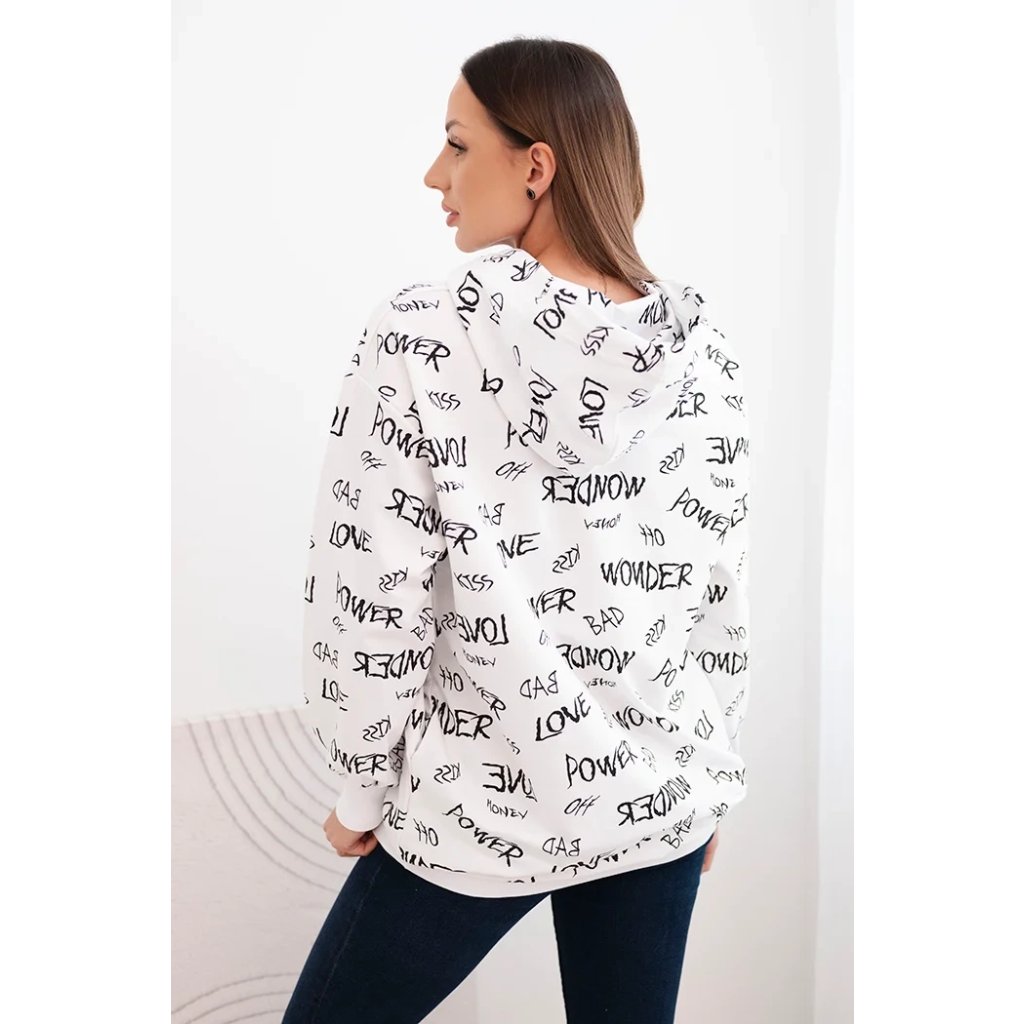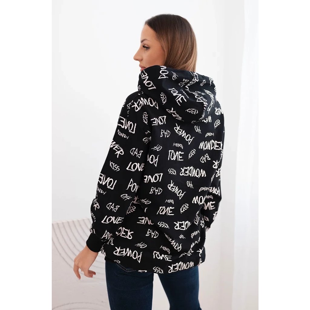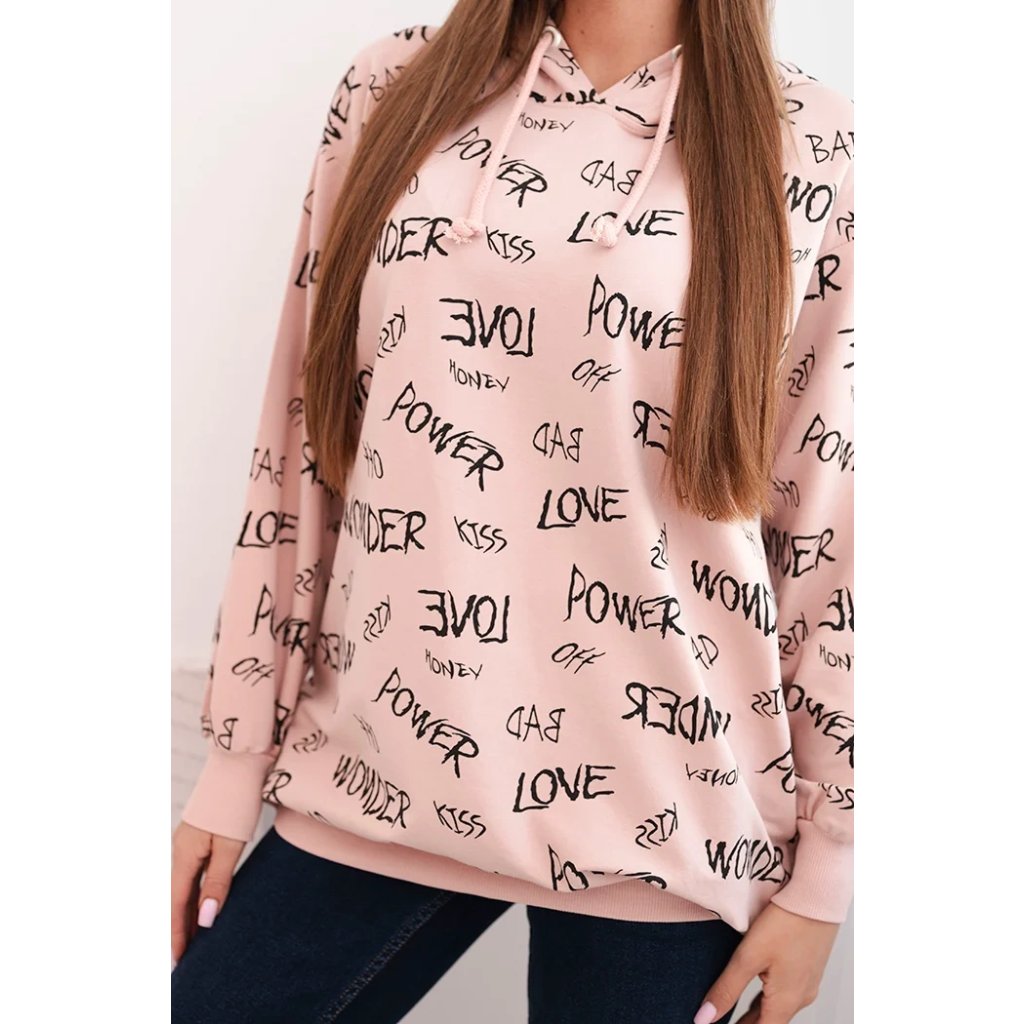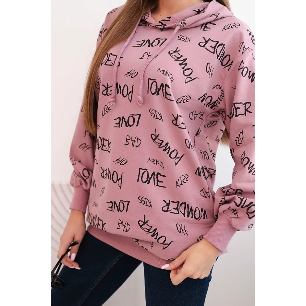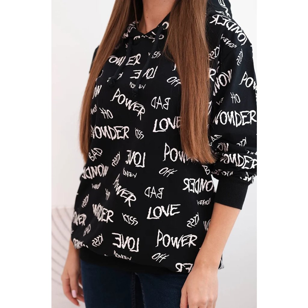Představujeme vám pohodlnou mikinu. Tato mikina má kapuci a kapsy. Je zdobena potiskem. Mikina je vyrobena z vysoce kvalitního materiálu. Je univerzální velikosti a padne ženám, které nosí velikosti M, L nebo XL.