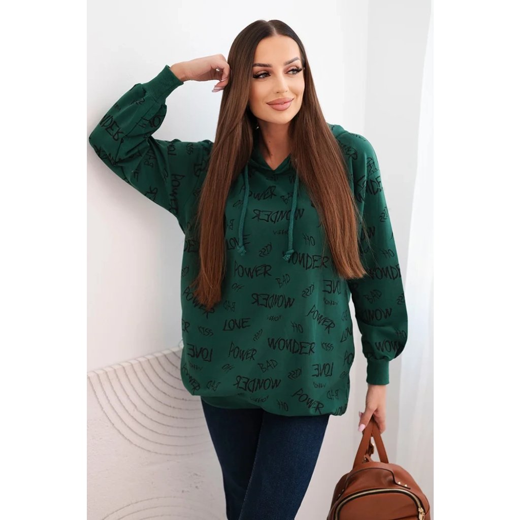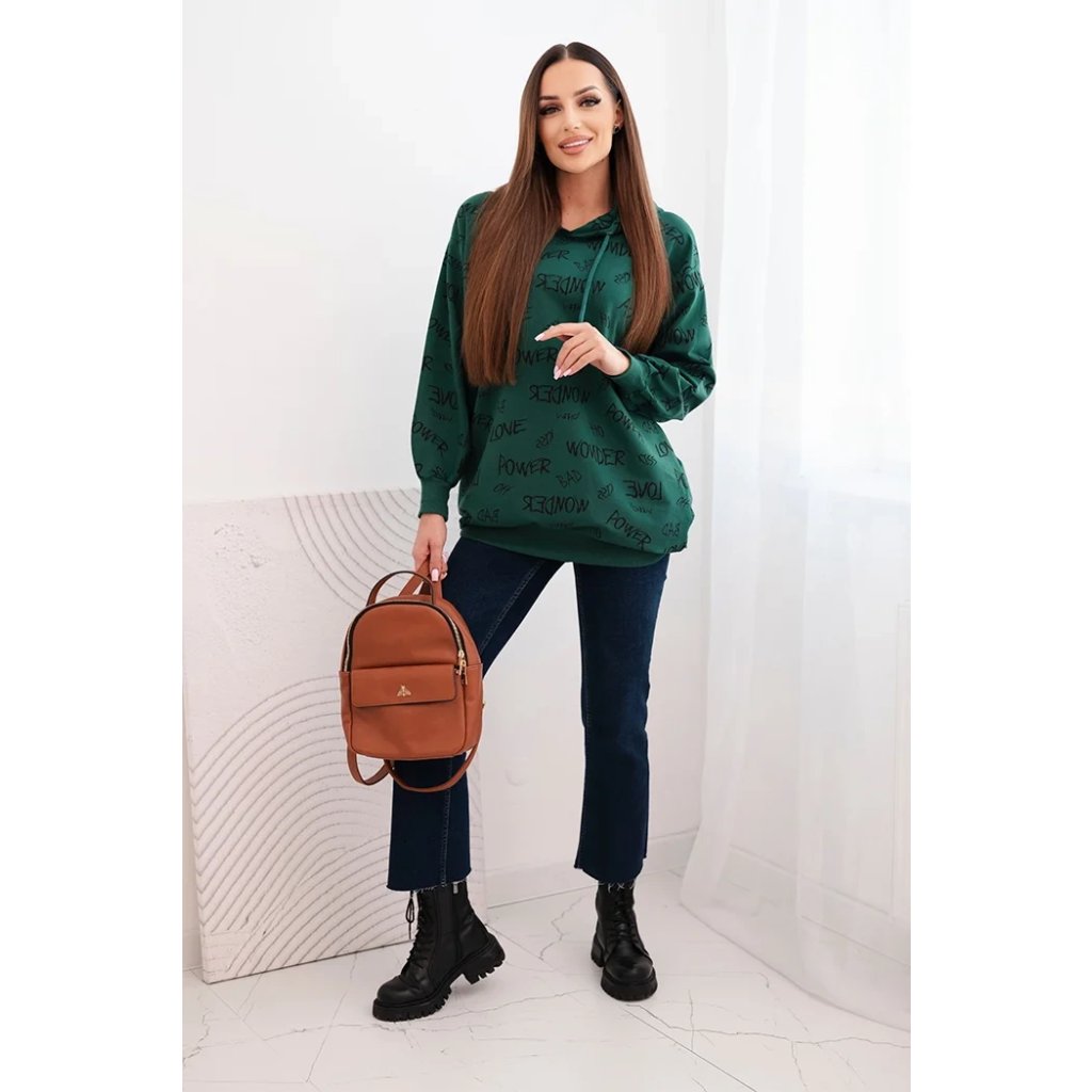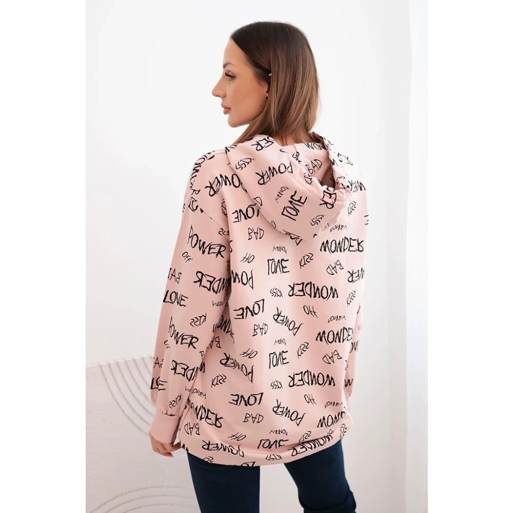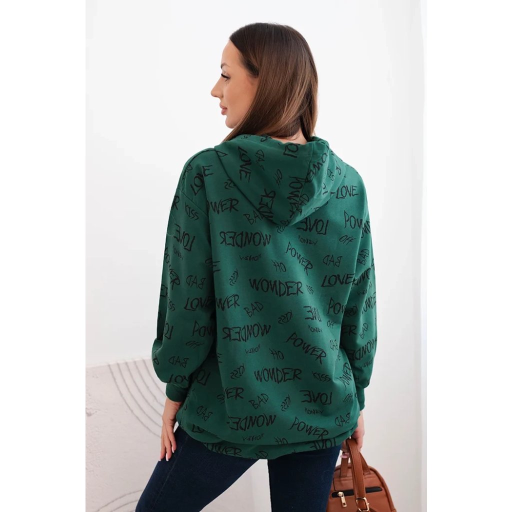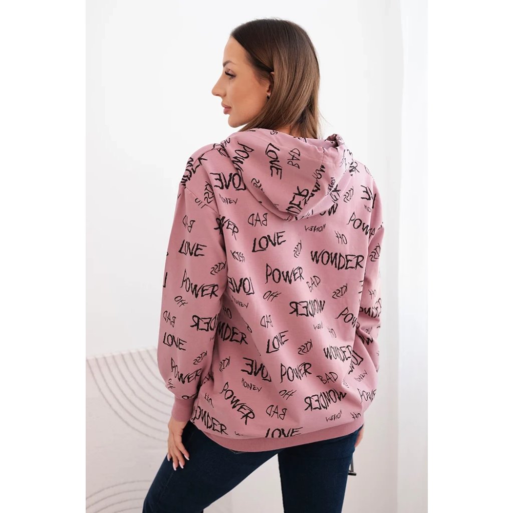 Představujeme vám pohodlnou mikinu. Tato mikina má kapuci a kapsy. Je zdobena potiskem. Mikina je vyrobena z vysoce kvalitního materiálu. Je univerzální velikosti a padne ženám, které nosí velikosti M, L nebo XL.