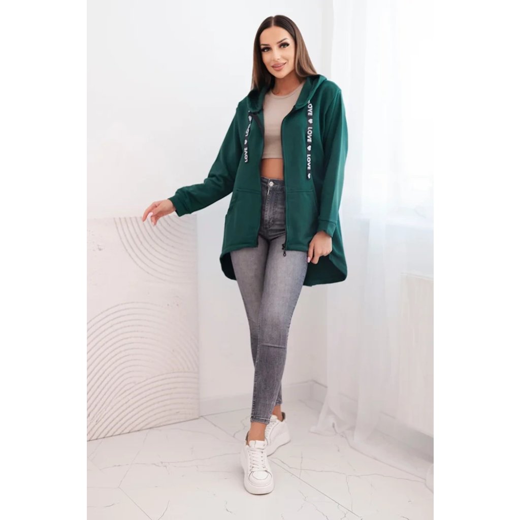 Mikina s prodlouženými zády a kapucí zelená