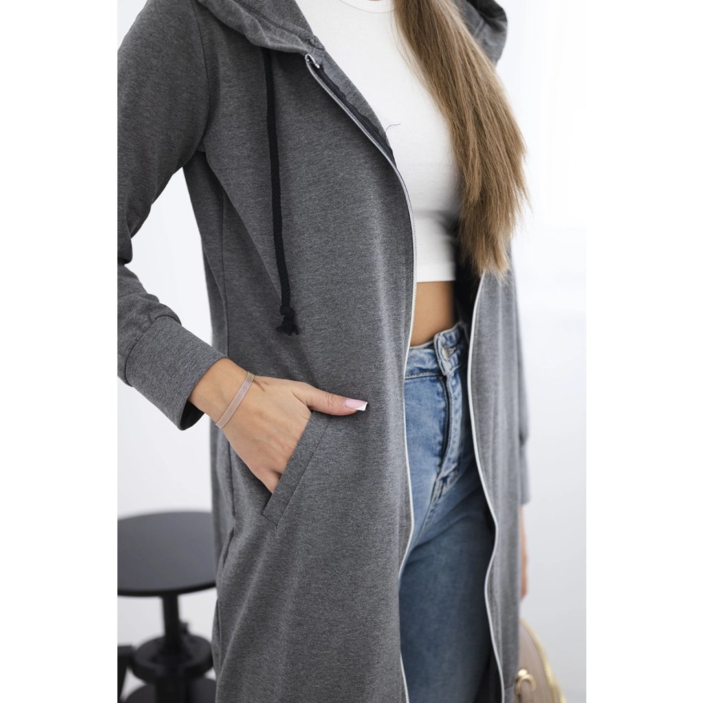 Představujeme vám pohodlnou dlouhou mikinu s kapucí. Mikina má zapínání na zip. Mikina je vyrobena z vysoce kvalitního materiálu. Velikost je univerzální a vyhovuje dámám, které nosí velikost S, M nebo L.