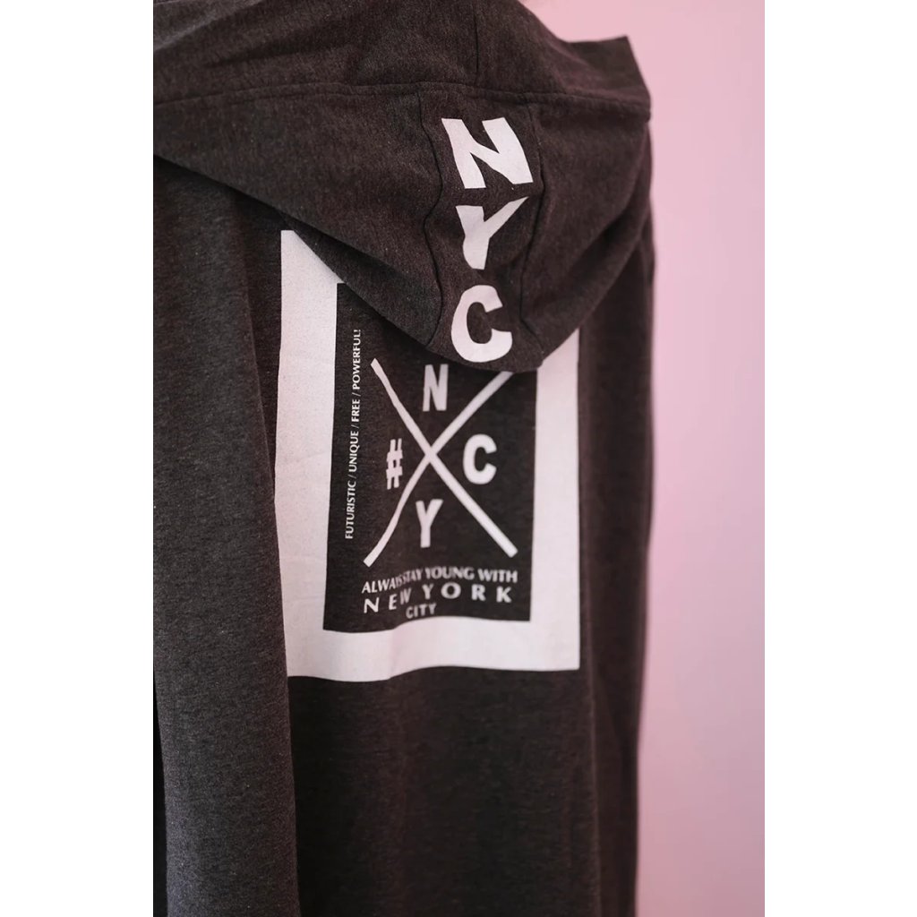 Představujeme vám dlouhou mikinu s kapucí. Žíhaná s kapsami a potiskem. Ideální pro každou siluetu. Mikina je vyrobena z vysoce kvalitního materiálu. Velikost je univerzální a vyhovuje dámám ve velikostech M a L, XL.