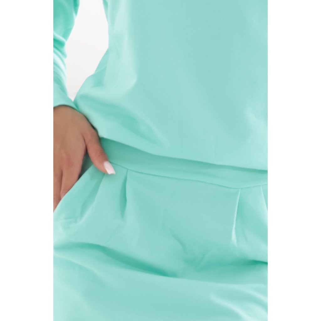 Mikinové šaty s dlouhým rukávem a kapsami - pohodlný střih s hlubokým výstřihem vzadu - mátově modré 189-12