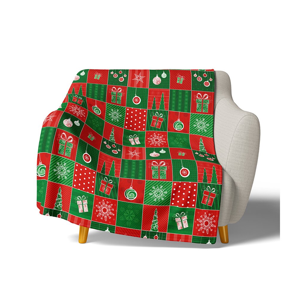 Mikroplyšová deka Vánoční Patchwork bude vhodný doplněk do obývacích pokojů, ložnic i dětských pokojů