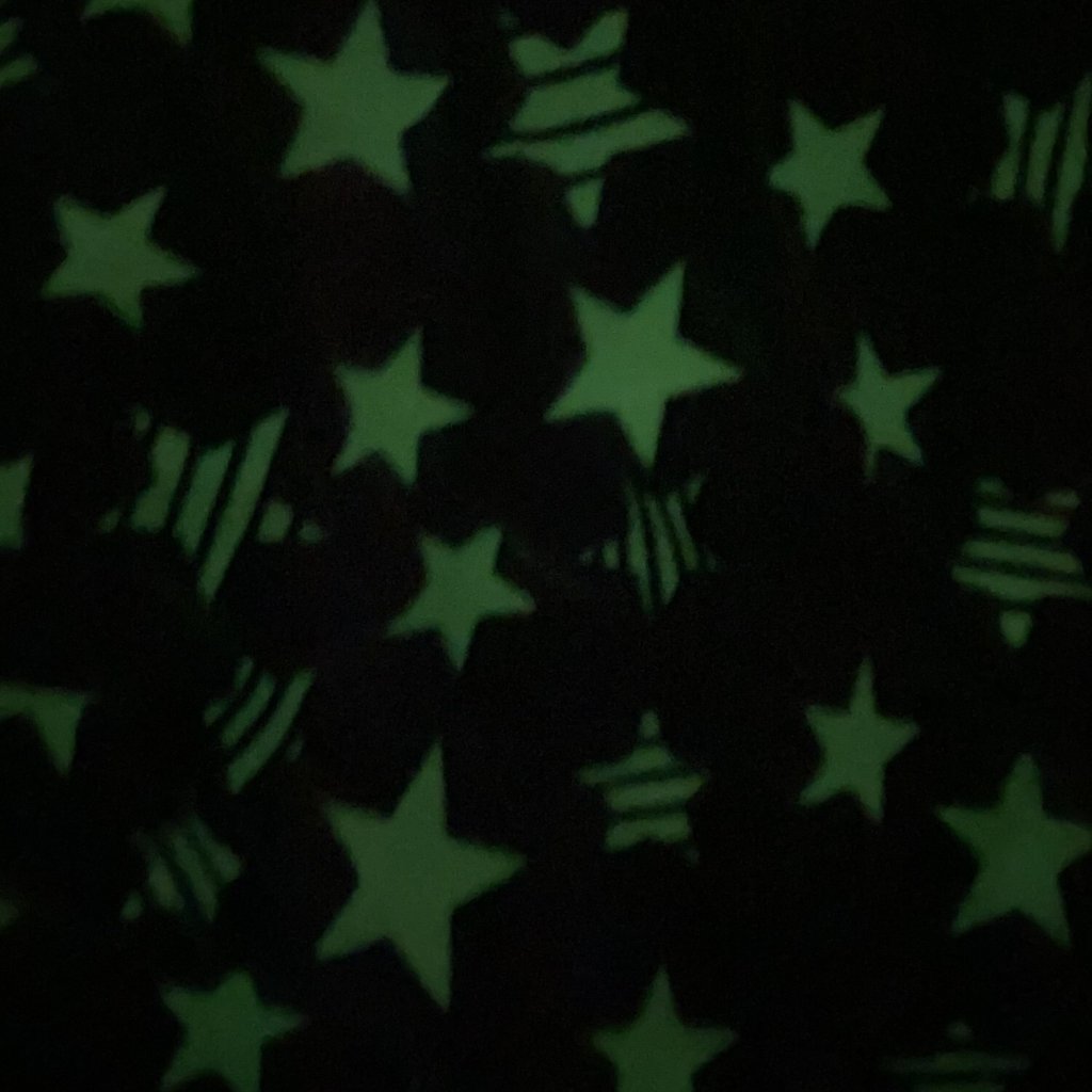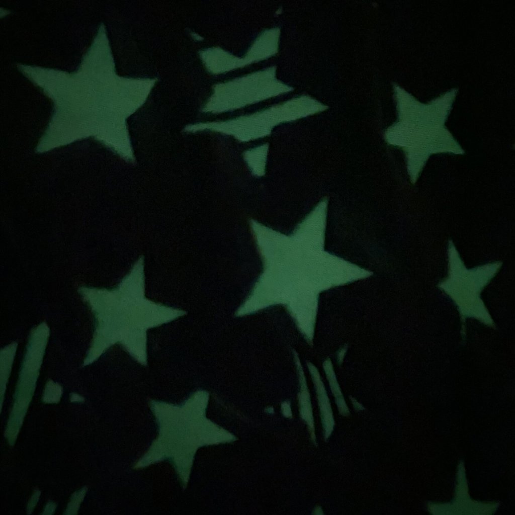 Hřejivý mikroplyš s přidaným luminescentním vláknem, které čerpá z denního světla, aby se s přicházející tmou rozzářilo a navodilo efekt vesmíru.Vynikající hřejivé vlastnosti, heboučká a příjemná na dotek.