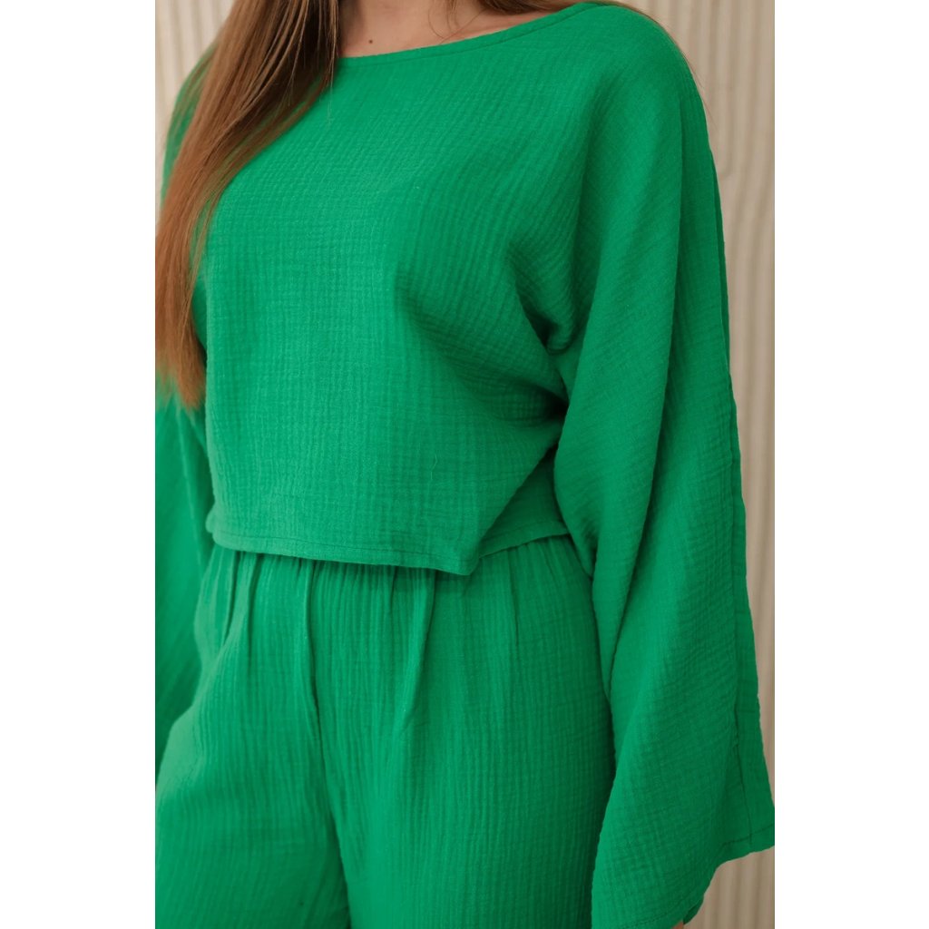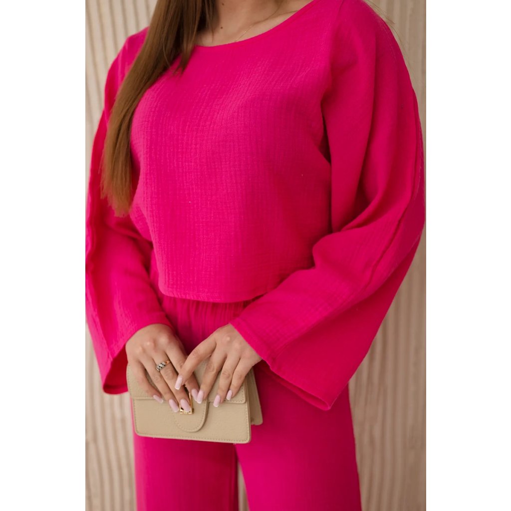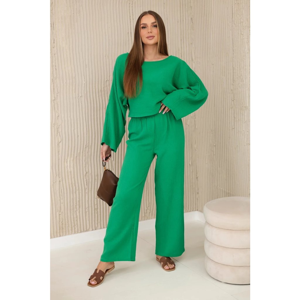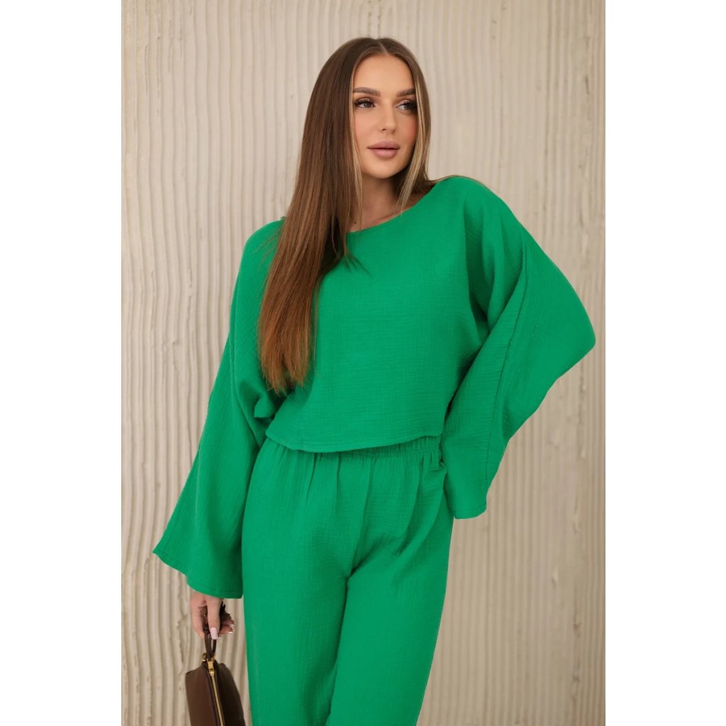 Souprava mušelínová halenka + kalhoty je dokonalou kombinací elegance a lehkosti, díky které se budete v každé situaci cítit stylově a pohodlně. Tato sada je vyrobena z jemného a vzdušného mušelínového materiálu, díky kterému se budete cítit pohodlně a svěží po celý den. Halenka z tohoto setu se vyznačuje lehkým a volným střihem, který je jako stvořený pro letní dny. Jeho subtilní design a jemné povrchové úpravy dodávají eleganci a umožňují jej snadno kombinovat s různými šatníky. Mušelínové kalhoty jsou perfektním doplňkem soupravy, poskytují pohodlí a styl v jednom. Jejich lehký a vzdušný materiál je předurčuje na letní procházky nebo večerní vycházky. Široké nohy dodávají charakter a vypadají mimořádně působivě. Mušelínový set je perfektní volbou pro ženy, které oceňují pohodlí a eleganci v každodenním oblečení. Díky lehkému a vzdušnému materiálu a univerzálnímu designu se tento set skvěle hodí k různým příležitostem a stylům. Velikost je univerzální a padne ženám, které nosí velikost S, M nebo L.