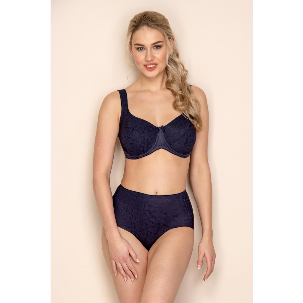 Šitá podprsenka s kosticí v oblíbeném střihu s bočním dílem, který vytlačí prsa do středu a krásně je zakulatí. Podprsenka je vhodná pro poprsí až do velikosti K. Tato podprsenka je perfektní volbou pro majitelky velkého poprsí, které nemají v oblibě vyztužené košíčky.