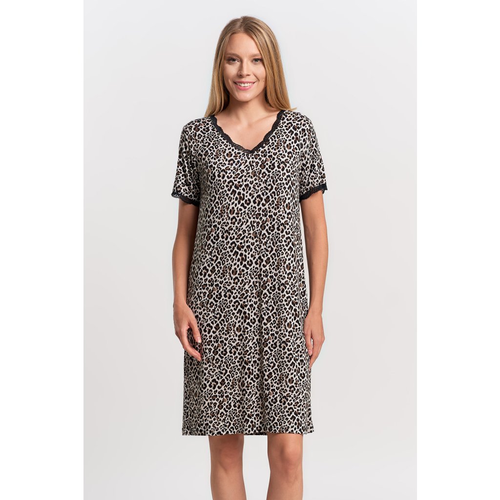 Lehká noční košilka Moraj PDK2700-008 je vyrobena z měkké viskózy s přídavkem elastanu, díky čemuž je příjemná na pokožku a pohodlně splývá. Krátké rukávy a výstřih do V podporují cirkulaci vzduchu a poskytují pohodlí za teplejších nocí. Krátká délka umožňuje volný pohyb a dodává šatům ležérní, každodenní vzhled. Jednoduchý, uvolněný střih neomezuje a pružná látka se při spánku pohybuje s tělem. Výstřih je úhledný, decentní a nedráždí. Absence zapínání usnadňuje oblékání a svlékání noční košilky. Je praktickou volbou pro každodenní relaxaci, rána doma a cesty, kdy je pohodlí a prodyšná látka klíčová.Měkký viskózový úplet s elastanem