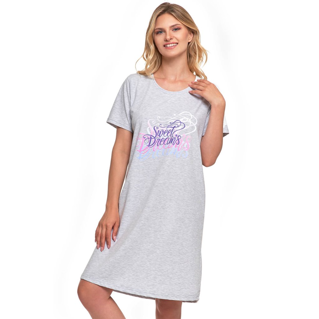 Šedá noční košile.- klasický střih s potiskem
