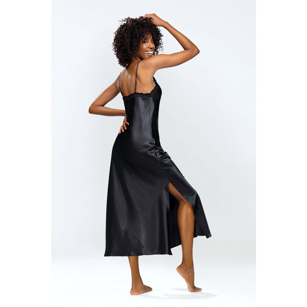Abeni – klasika a elegance v jednom. - tričko maxi délky - Výstřih ve tvaru V - horní část košile je zakončena krajkou - nastavitelná, neodepínatelná ramínka - rozparky na bocích - příjemný, kvalitní satén Složení: 100% polyester.