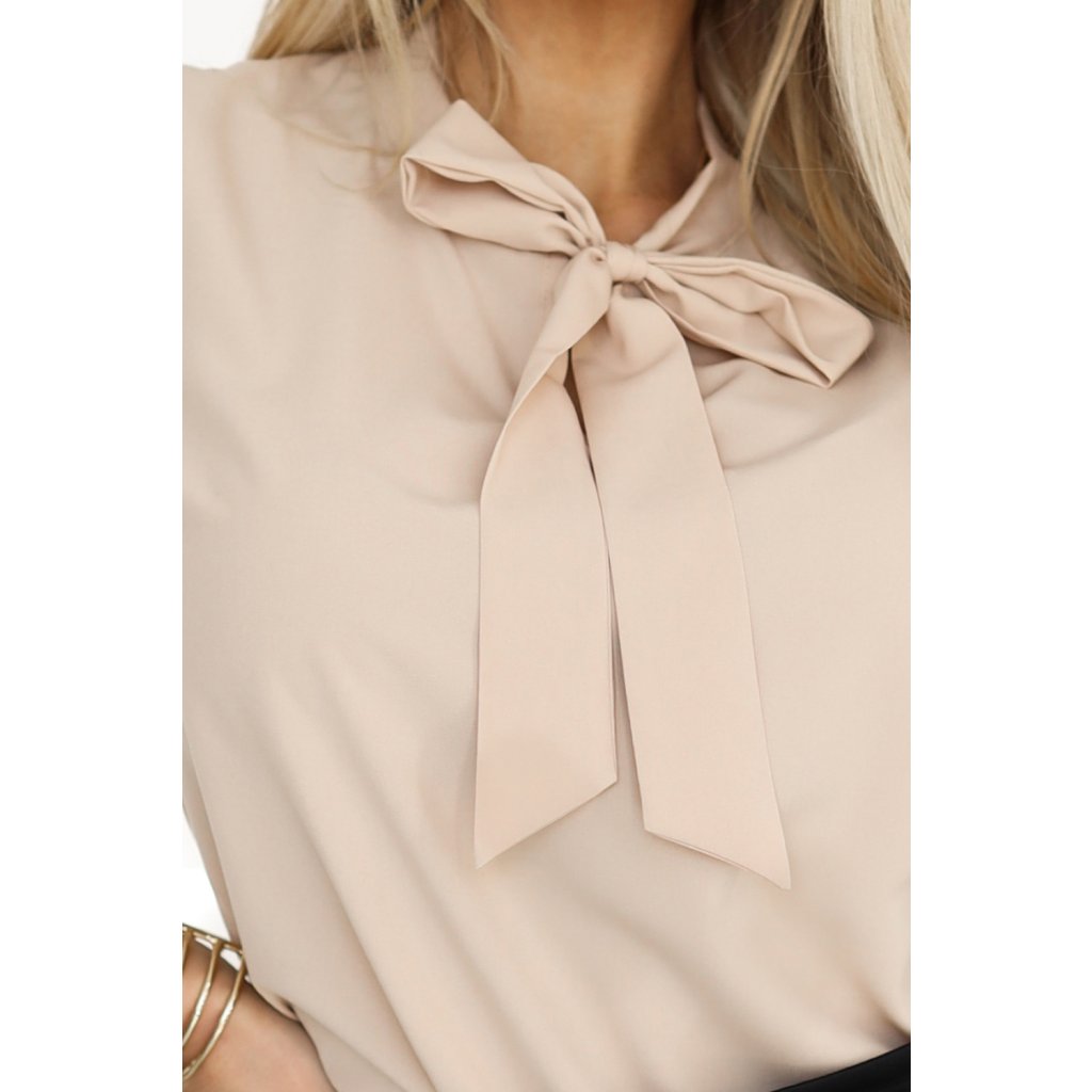 Business halenka Numoco je kombinací klasické a moderní elegance. Vyrobeno z měkkého, na dotek příjemného materiálu v krásné béžové barvě, vyniká stylovým zavazováním u výstřihu, které mu dodává ženský půvab. Dlouhé rukávy zakončené subtilními manžetami zdůrazňují formální charakter halenky, díky čemuž je ideální volbou do kanceláře, na obchodní jednání nebo elegantní příležitosti. Polský výrobek, který zaručuje vynikající kvalitu zpracování a preciznost v každém detailu.