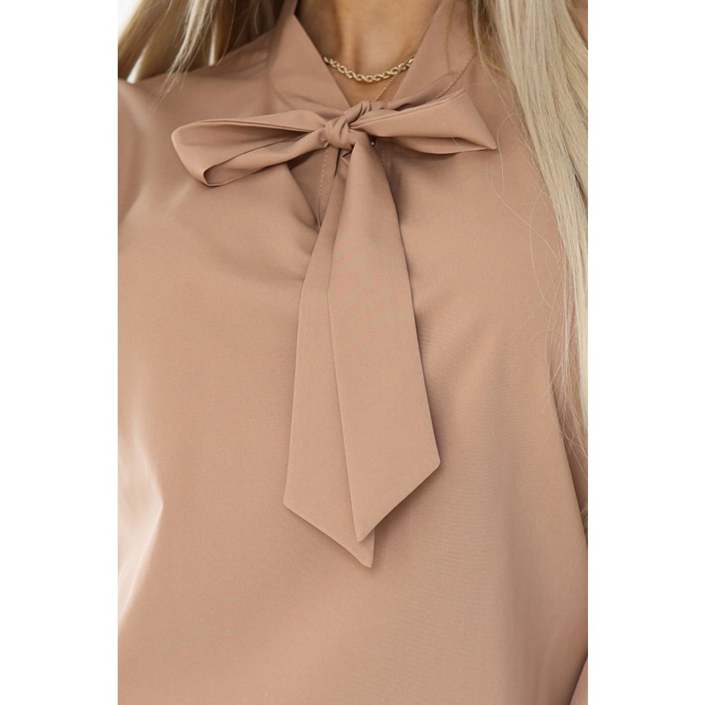 Elegantní business halenka v barvě mocha mousse je nezbytností v šatníku každé stylové ženy. Klasický střih s dlouhými rukávy, širokými manžetami a efektní mašlí u krku z ní dělá ideální volbu do kanceláře i na formální příležitosti.