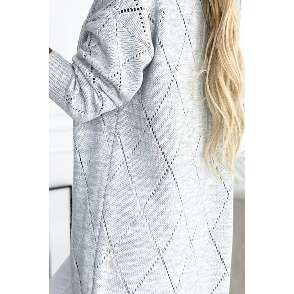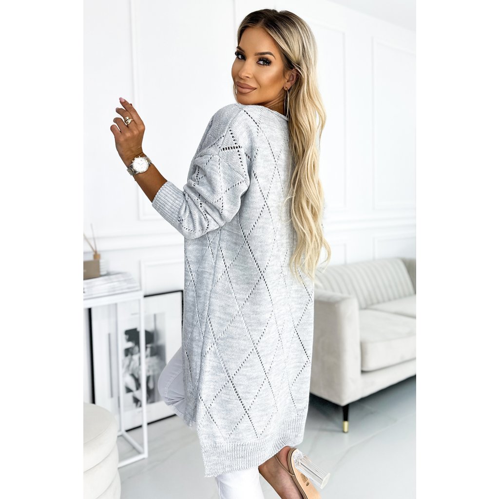 Numoco Cardigan - svetrová pelerína s delším zadním dílem v prolamovaném diamantu - šedá 486-1