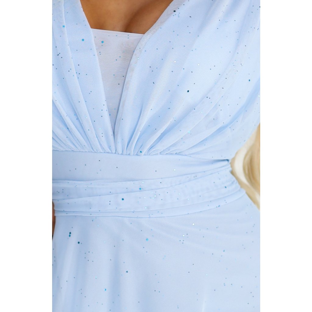 Světle modré maxi šaty plus size s třpytivým tylem - Numoco Basic