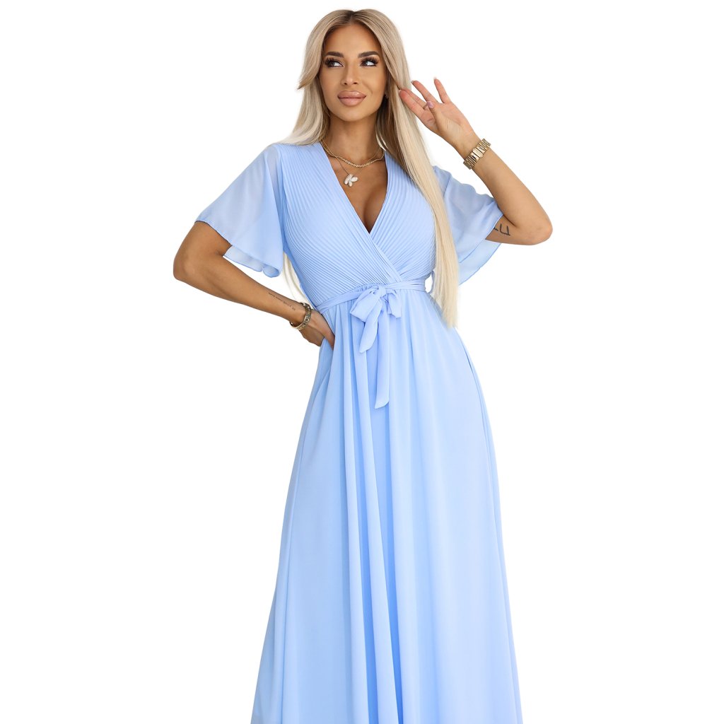Základní světle modré šifonové maxi šaty Numoco – ideální pro zvláštní příležitosti a léto!