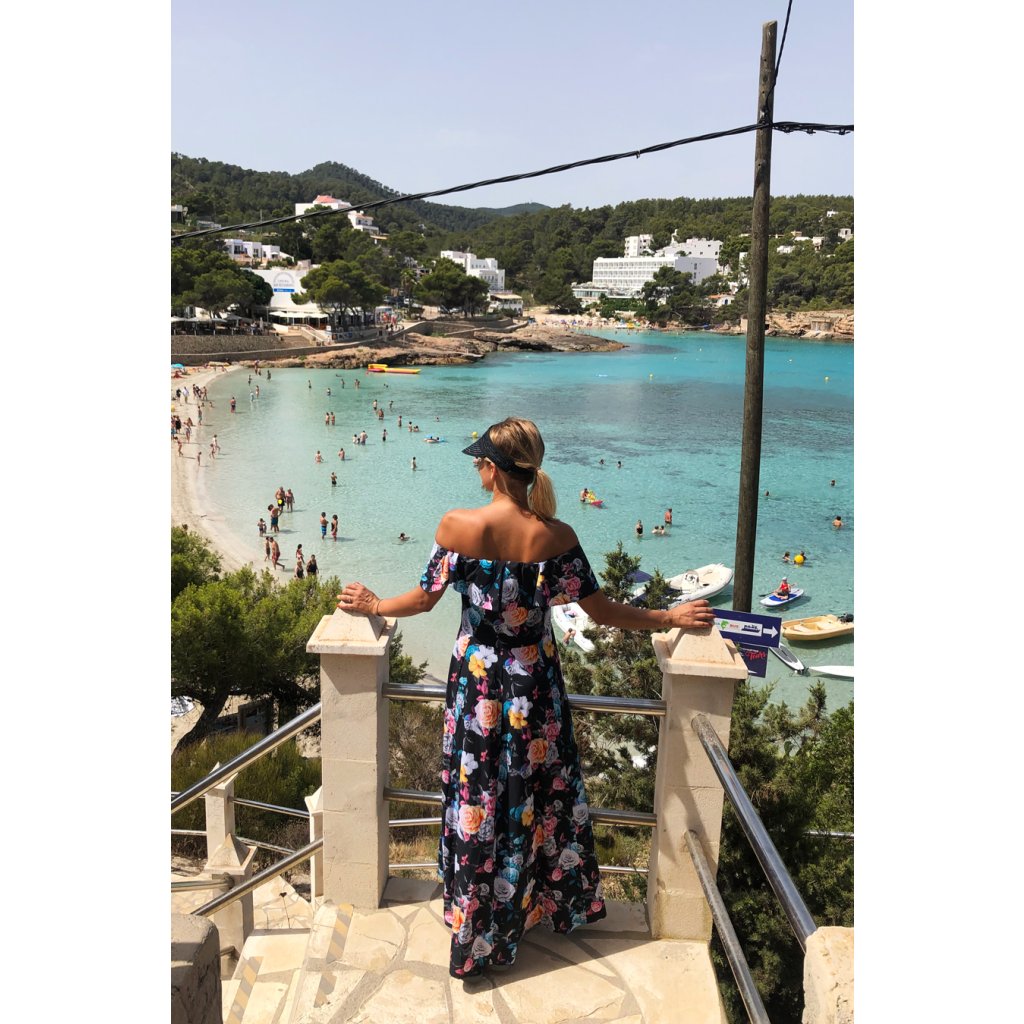 Dlouhé šaty s volánkem - španělština - černá s barevnými květy. Barvy květů se mohou mírně lišit. Značka numoco.