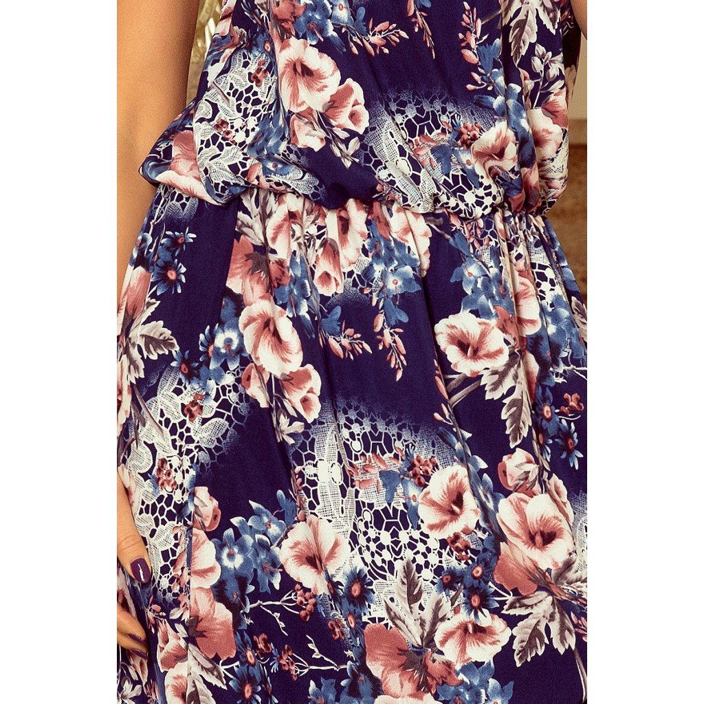 Dlouhé šaty maxi svázané kolem krku s potiskem v sléza květina. Značka numoco. Produkce Polsko.