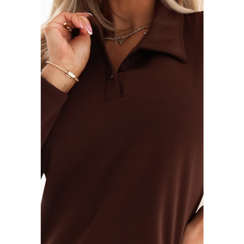 Pokud hledáte šaty, které udělají dojem bez přehánění a způsobí, že se budete cítit sebevědomě - tyto hnědé midi šaty s límečkem Numoco Basic budou vaší jistotou.