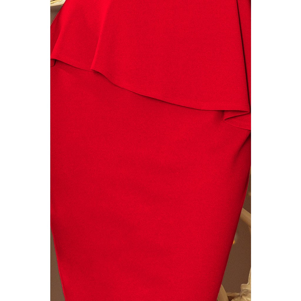 Numoco Elegantní midi šaty s volánky - červené 192-5