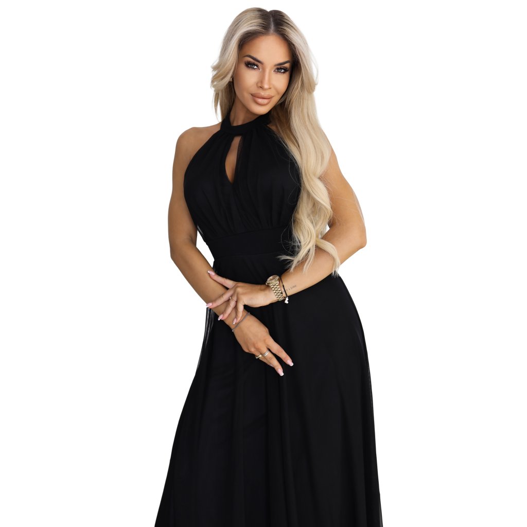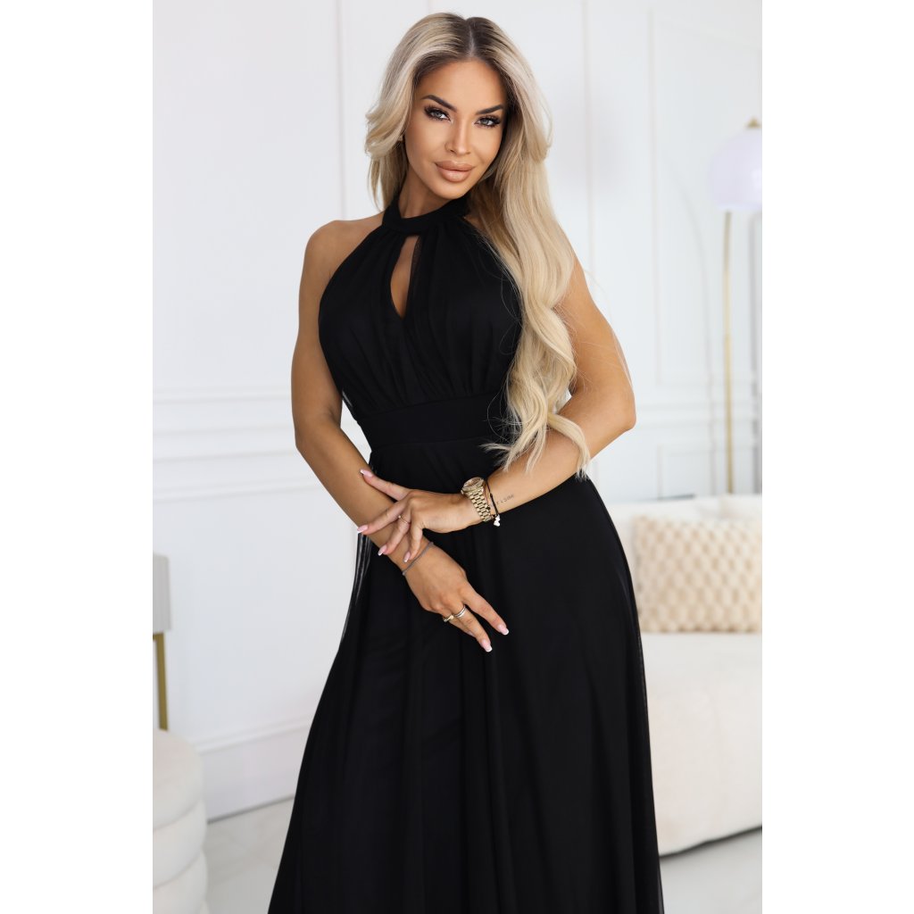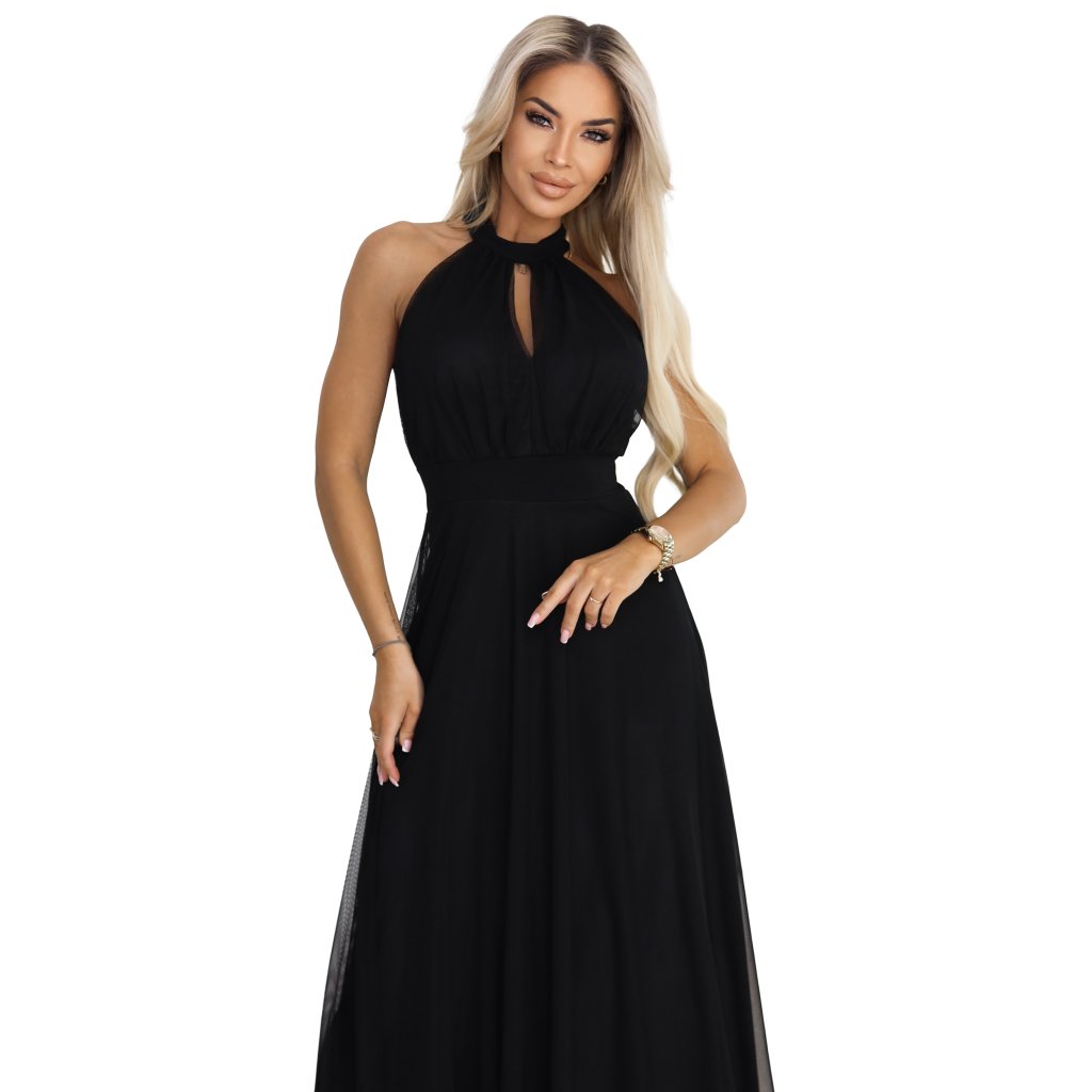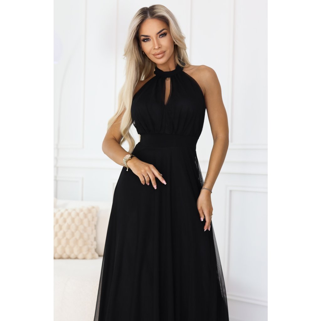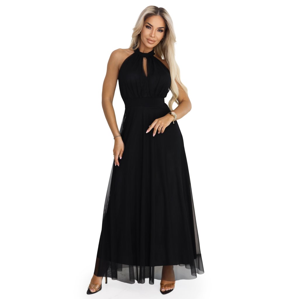 Černé večerní maxi šaty halter s tylem - Numoco Basic