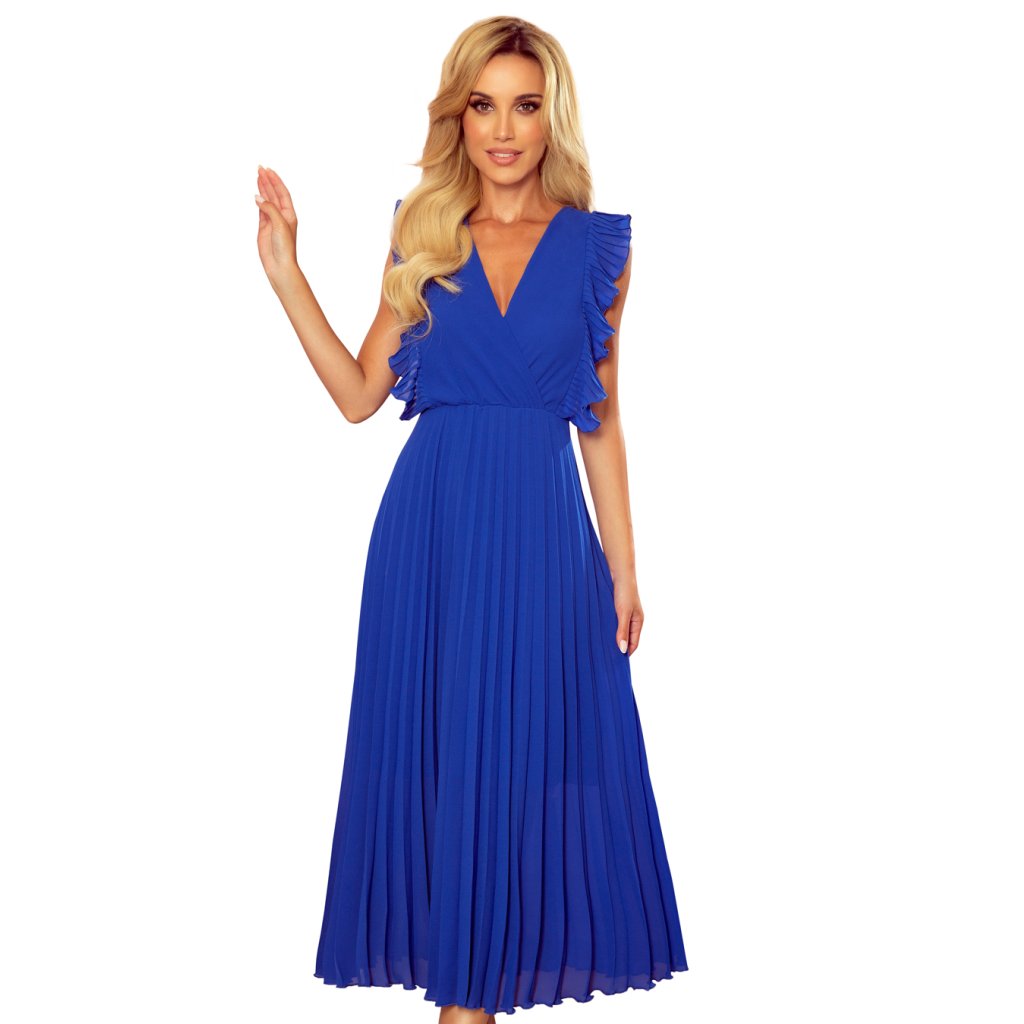 Numoco EMILY Plisované šaty s volánky a výstřihem - Modré 315-2