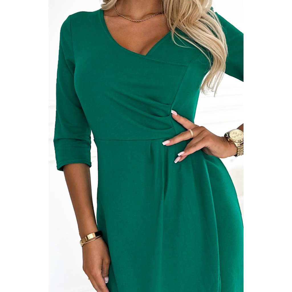 Numoco IRIS Šaty s řasením a výstřihem - zelené 255-4