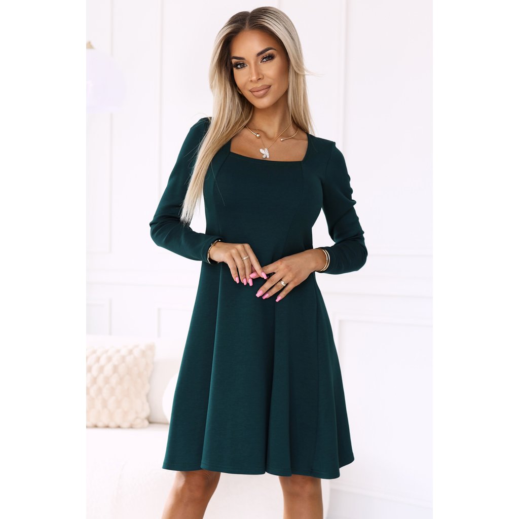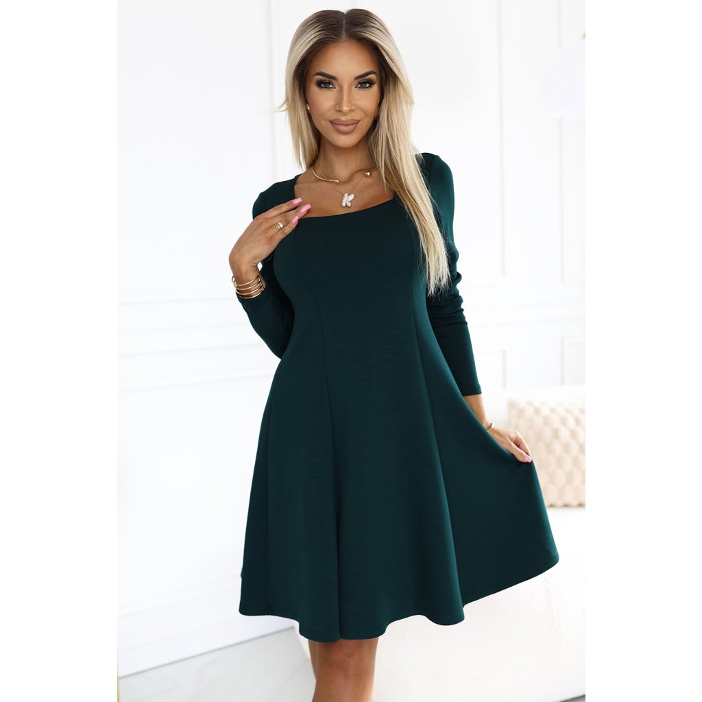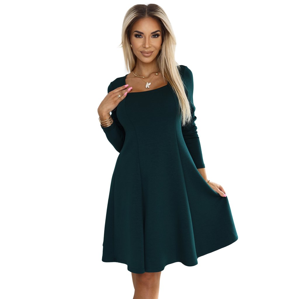 Numoco IVANA pohodlné trapézové šaty s výstřihem a dlouhým rukávem - zelené 574-1 - výprodej