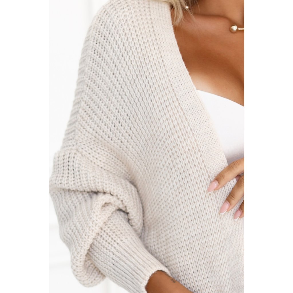 pletený kardigan s kapsami, dámský béžový kardigan, svetr přehoz, numoco basic, evropský produkt, kardigan k šatům, kardigan na každý den, velkoobchod dámského oblečení, polský velkoobchod se šaty, numoco, svetr velikých velikostí