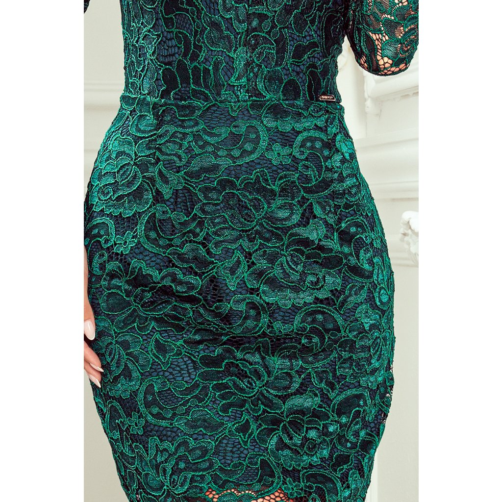 Krajkové šaty s výstřihem a dlouhými rukávy - zelené. Klasické a elegantní. Polská produkce. Numoco