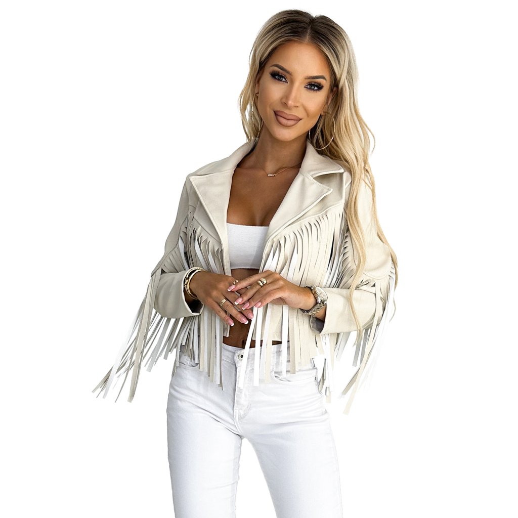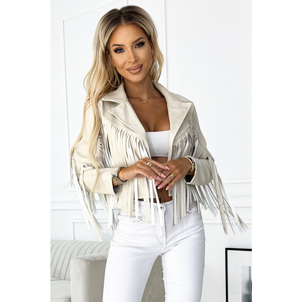 Numoco Krátká bunda s třásněmi z jemné eko kůže - béžová 624-1