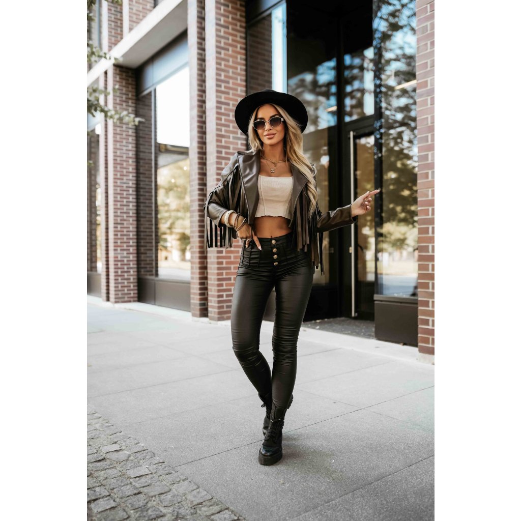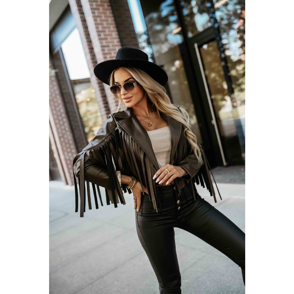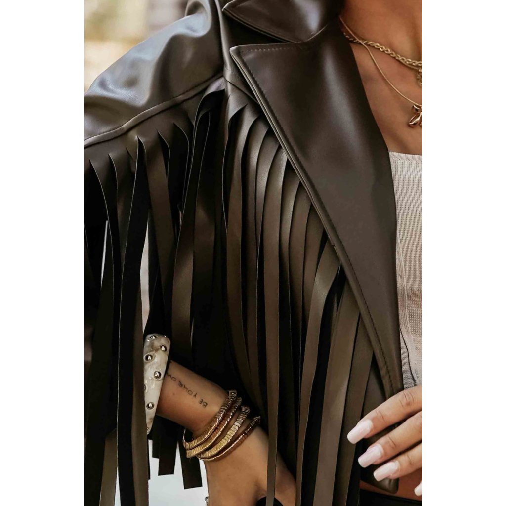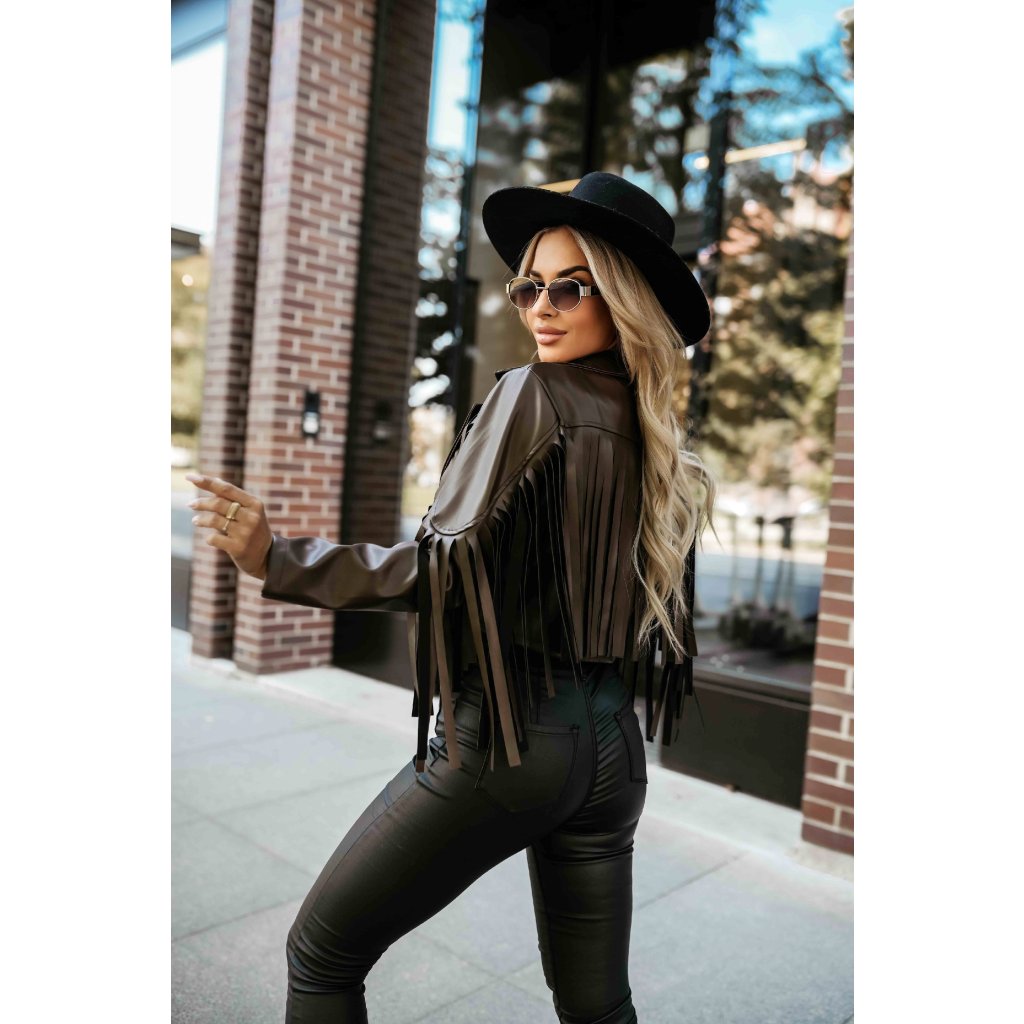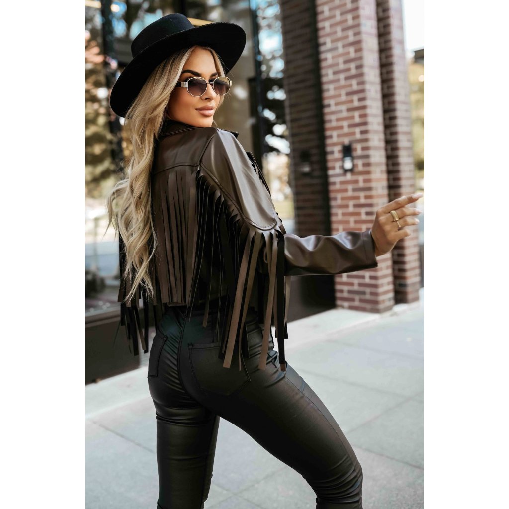 Numoco Krátká bunda s třásněmi z měkké ekokůže - čokoládová 624-4